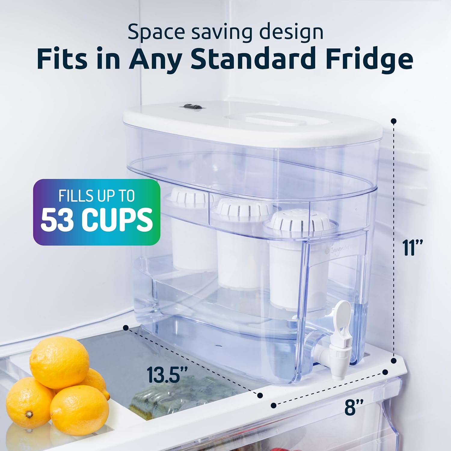 Invigorated Water - Alkaline Countertop Water Filter Dispenser, Large 52-Cup Capacity, Mineralized Alkaline Water, BPA-Free, 96 Gallons/Filter (White, 3 Filters Included)