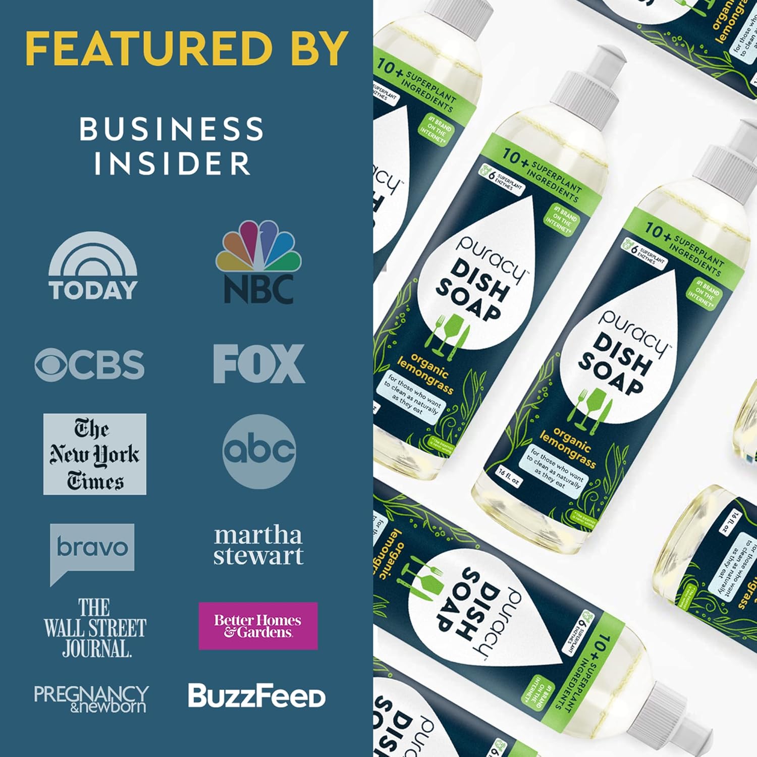 Puracy Natural Dish Soap Packs - Skin-Softening Plant-Based Dishwashing Soap, Non-Toxic Dish Soap, Organic Liquid Dishwashing Detergent Soap (Organic Lemongrass, 16 fl oz, 3 Pack)