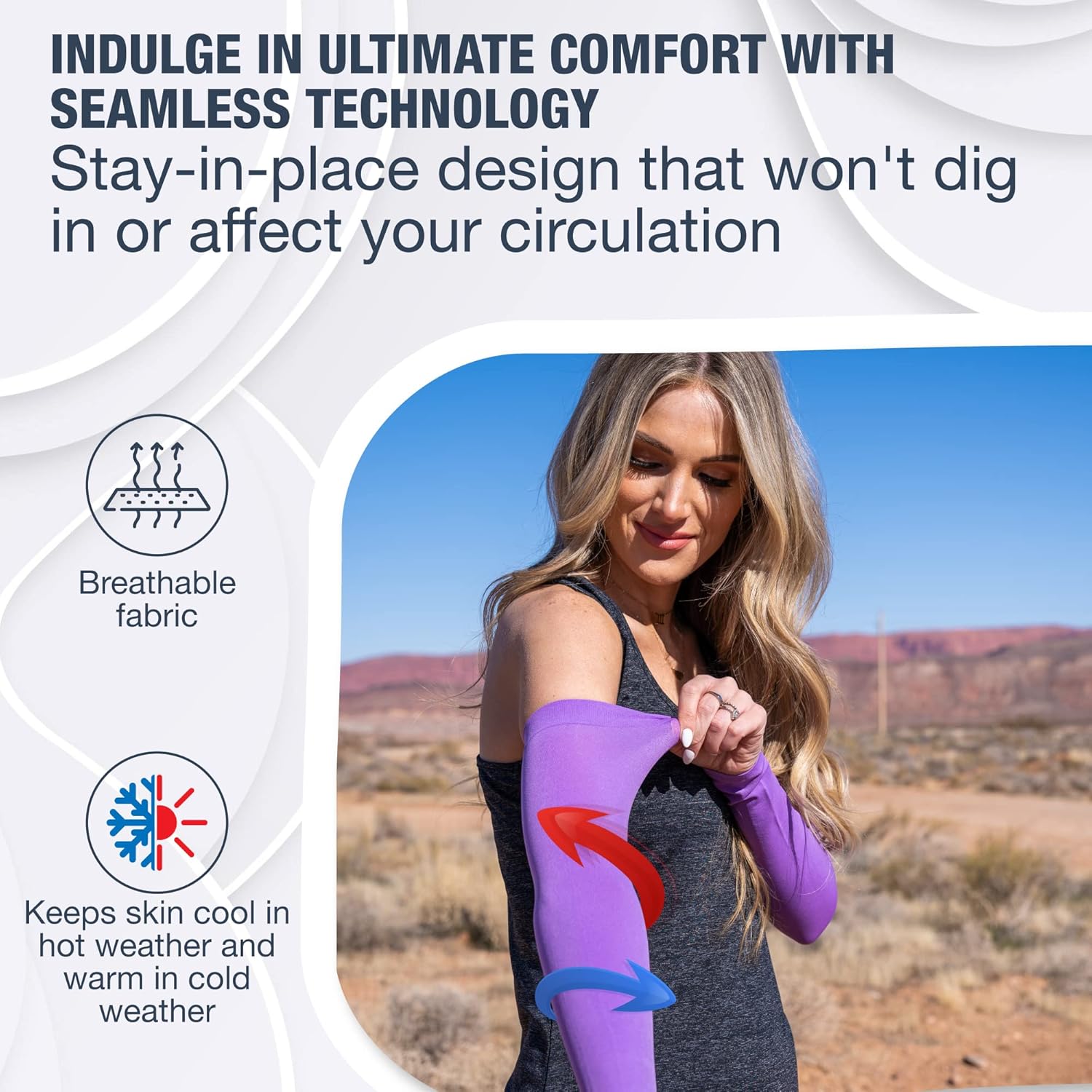 - Don’t settle for sleeves for arms that use cheap materials that grow hot & itchy during wear. Our arm cooling sleeves for men & women are constructed of lightweight moisture-wicking fabric that’s highly breathable, dries quickly, and keeps skin cool. Durable and weather-resistant, these zero-chemical, breathable sleeves are made to last through every adventure.