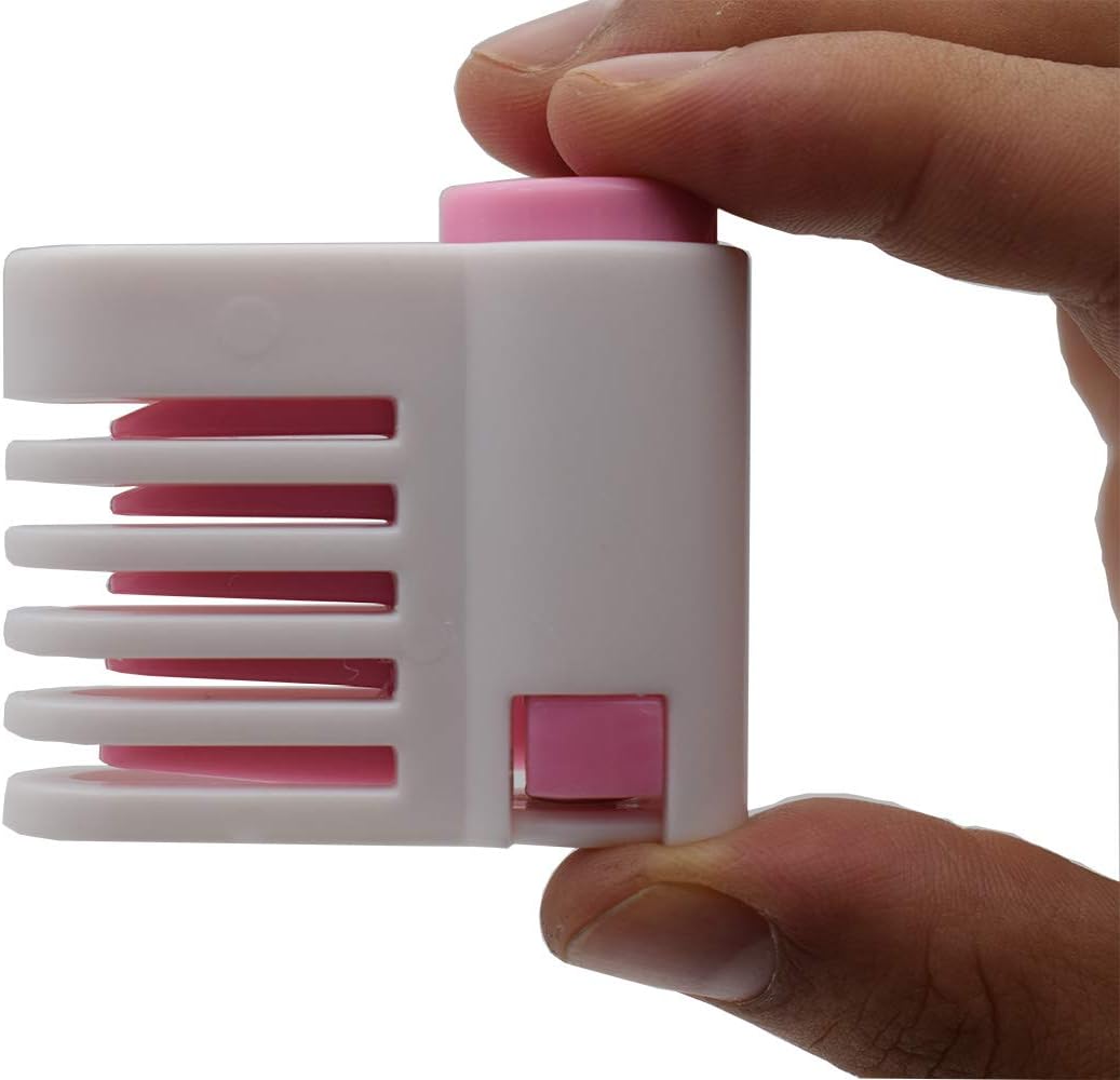- Operation is very simple. press two button of slicer to clamp knife blade at same layer. Move the blade horizontally at flat surface. You can get perfect uniform cake or toast slice at anywhere.