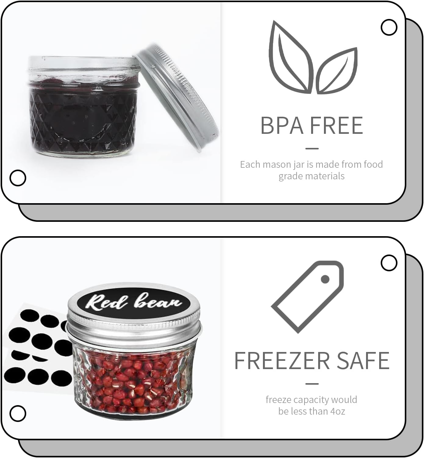 - EXCELLENCE IN QUALITY:Thick 4oz VERONES mason jars with food-safe, corrosion resistant lids - material is certified safety standards