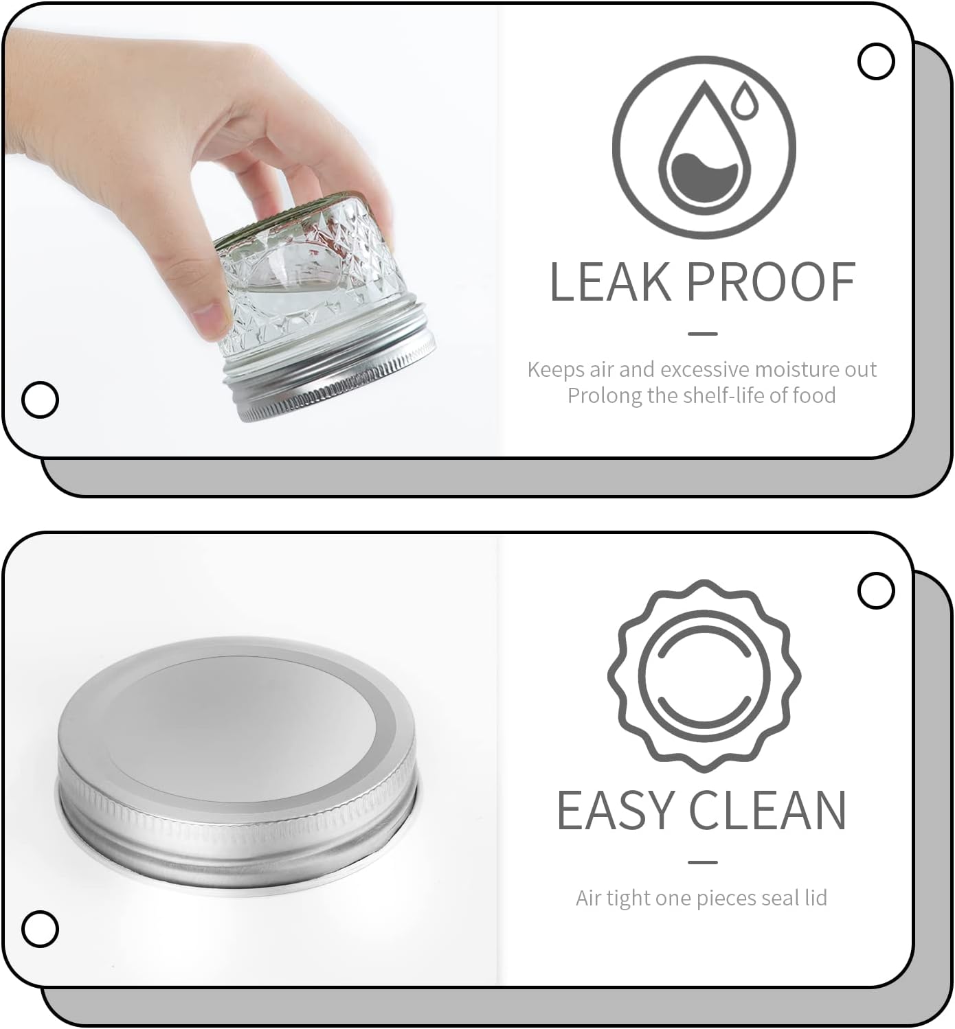 - FOOD GRADE:Each mason jar is made from food grade materials.Great for food storage.Suitable for use in preserving and canning. Safe for the refrigerator and the freezer