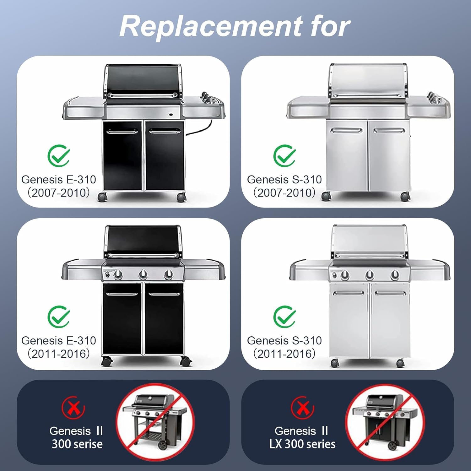 - 【Fits Perfectly – Weber Genesis 300 Series】 Designed as precise replacement for Weber Genesis 300 grill grates (2007–2016), including Genesis E-310, E-320, E-330, S-310, S-320, S-330, and EP-310, EP-320, EP-330. A reliable upgrade for Weber Genesis E-310 parts and for Weber Genesis 310 grill parts. (Not compatible with Genesis II 300 or Genesis II LX 300 series (don't fit) )