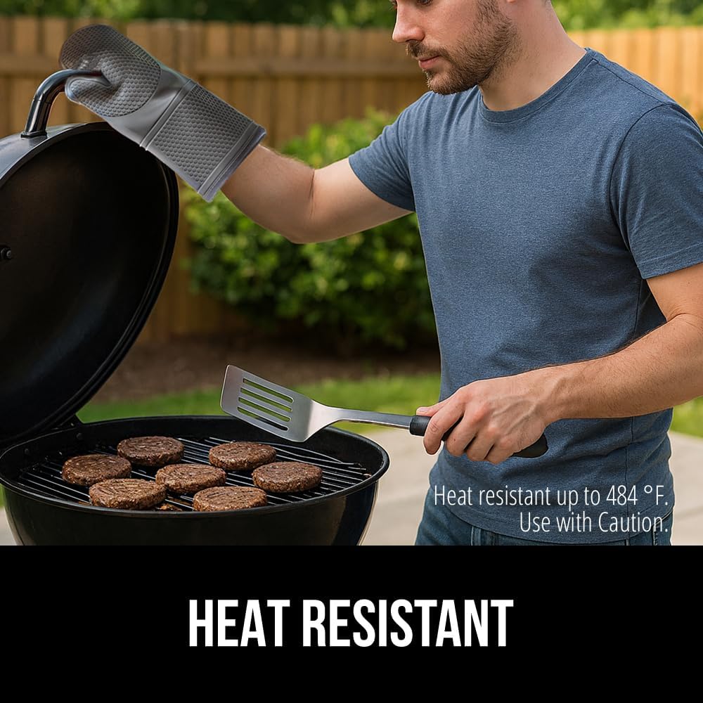 GORILLA GRIP BPA-Free Soft Silicone Oven Mitts, Heat Resistant and Waterproof Cooking Gloves, Thick Cotton Lining, Flexible Gripping for Baking Grilling, Kitchen Potholders Set of 2, 12.5x8.3, Gray