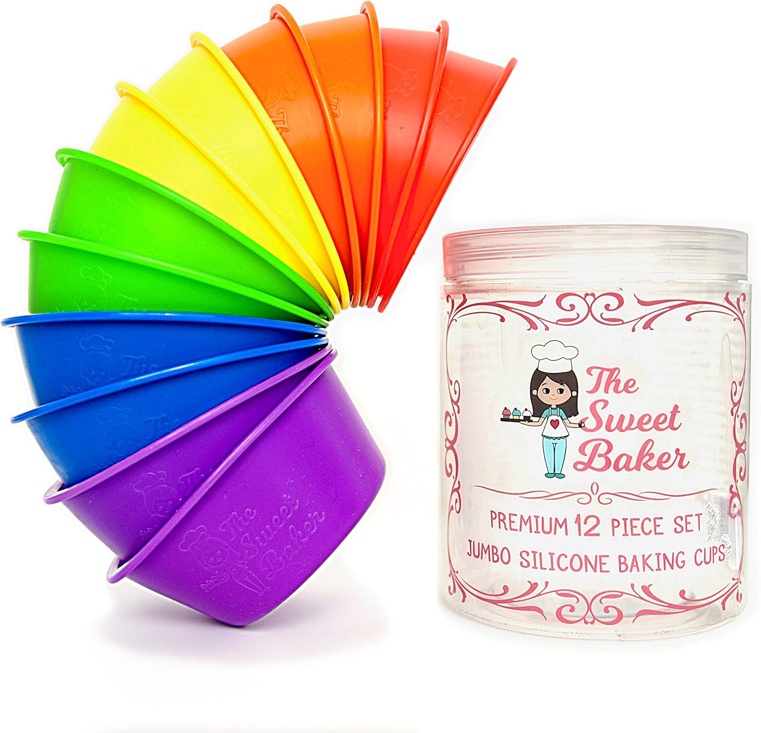 | Professional Jumbo Silicone Baking Cups | Premium 12 Piece Set | Reusable Cupcake Muffin Pans | BPA Free