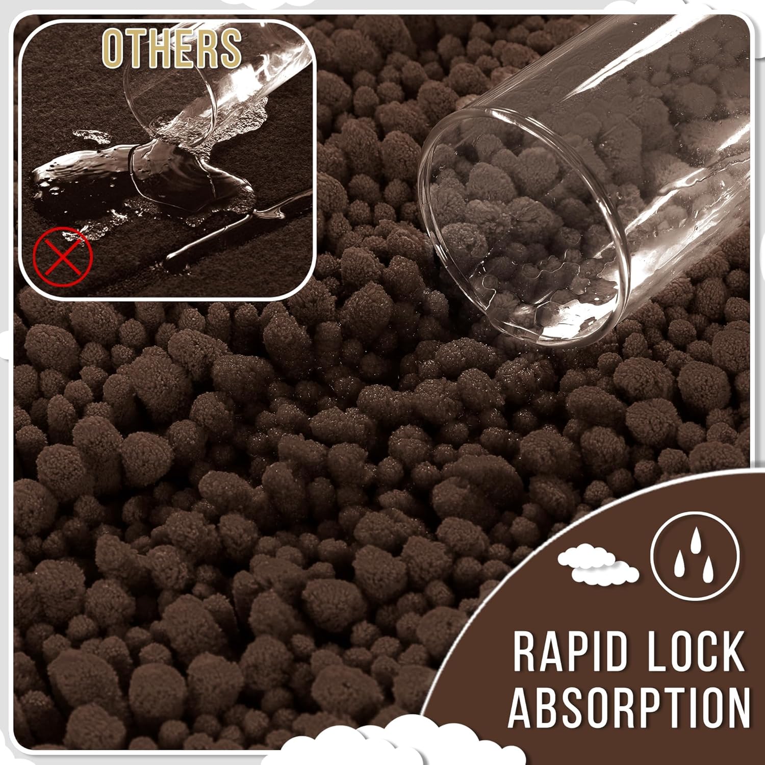 - Massive Water Absorption in Seconds: 5X faster than other materials mats, Yimobra bath mat absorbs 1000ml of water in 3 seconds. The vertical fiber channels lock moisture away from the surface, keeping your bathroom floor dry and discouraging damp environments. Perfect as a shower exit guard or sink splash catcher