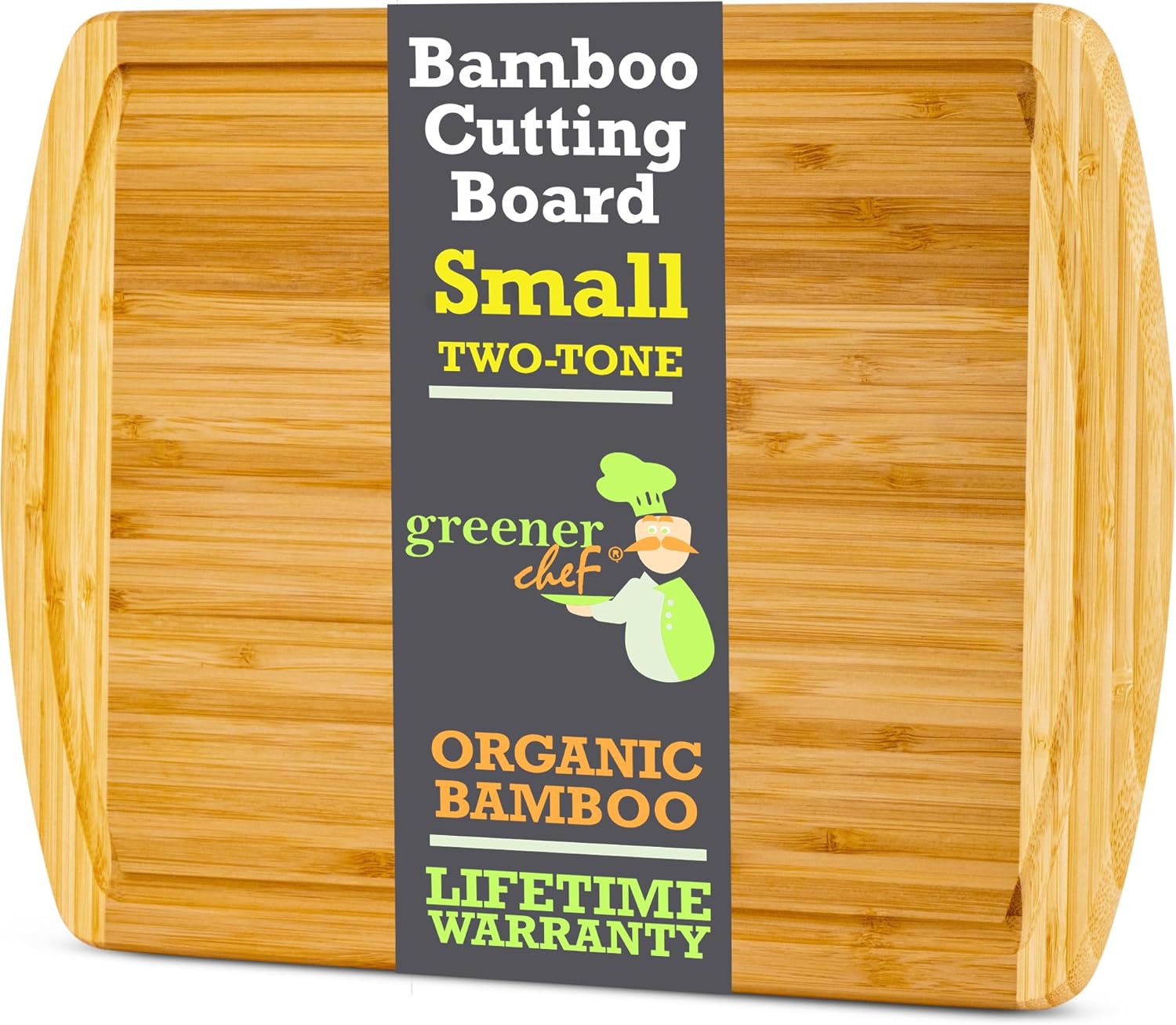 GREENER CHEF 12 Inch Small Bamboo Cutting Board with Lifetime Replacements - Small Wooden Chopping Board for Kitchen, Meat, Vegetables, Cheese, Bread, Charcuterie, and Everyday Food Prep
