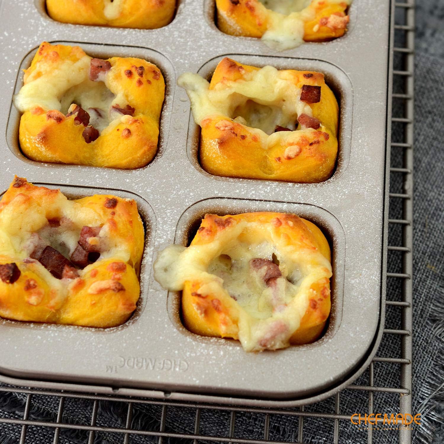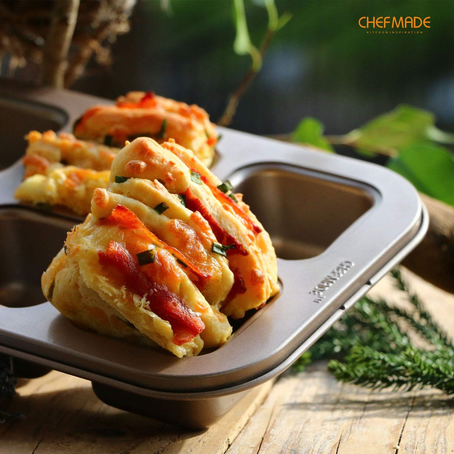 CHEFMADE Brownie Cake Pan, 6-Cavity Non-Stick Square Muffin Pan Blondie Bakeware for Oven Baking (Champagne Gold)