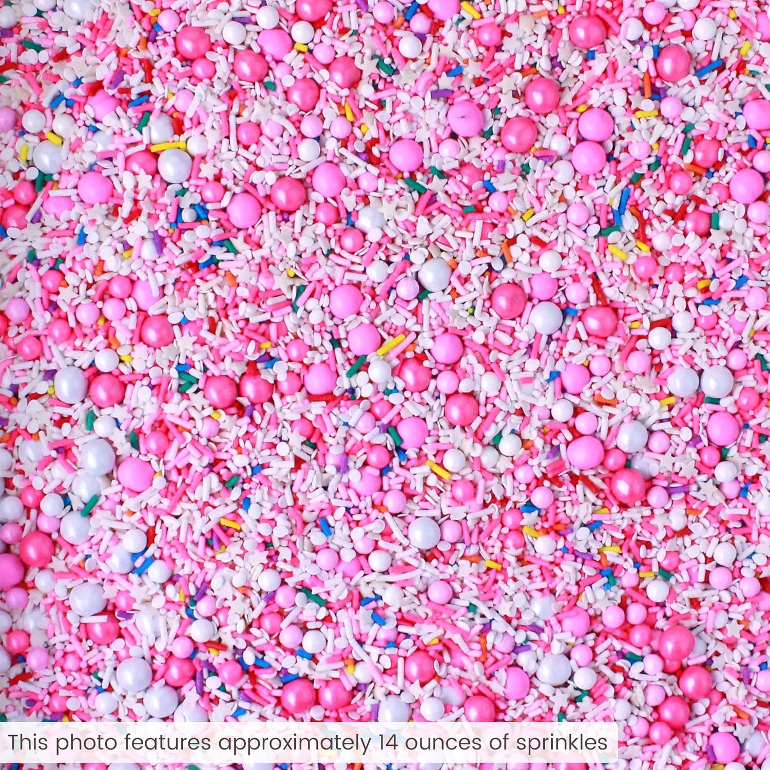 Sprinkle Pop A Frosted Affair Sprinkles Mix| Pink White Sprinkles with Rainbow Pops| Decorating Sprinkles Made in USA for Girl Baby shower Gender Reveal Birthday Cake Cupcakes Donuts Cookies, 2oz