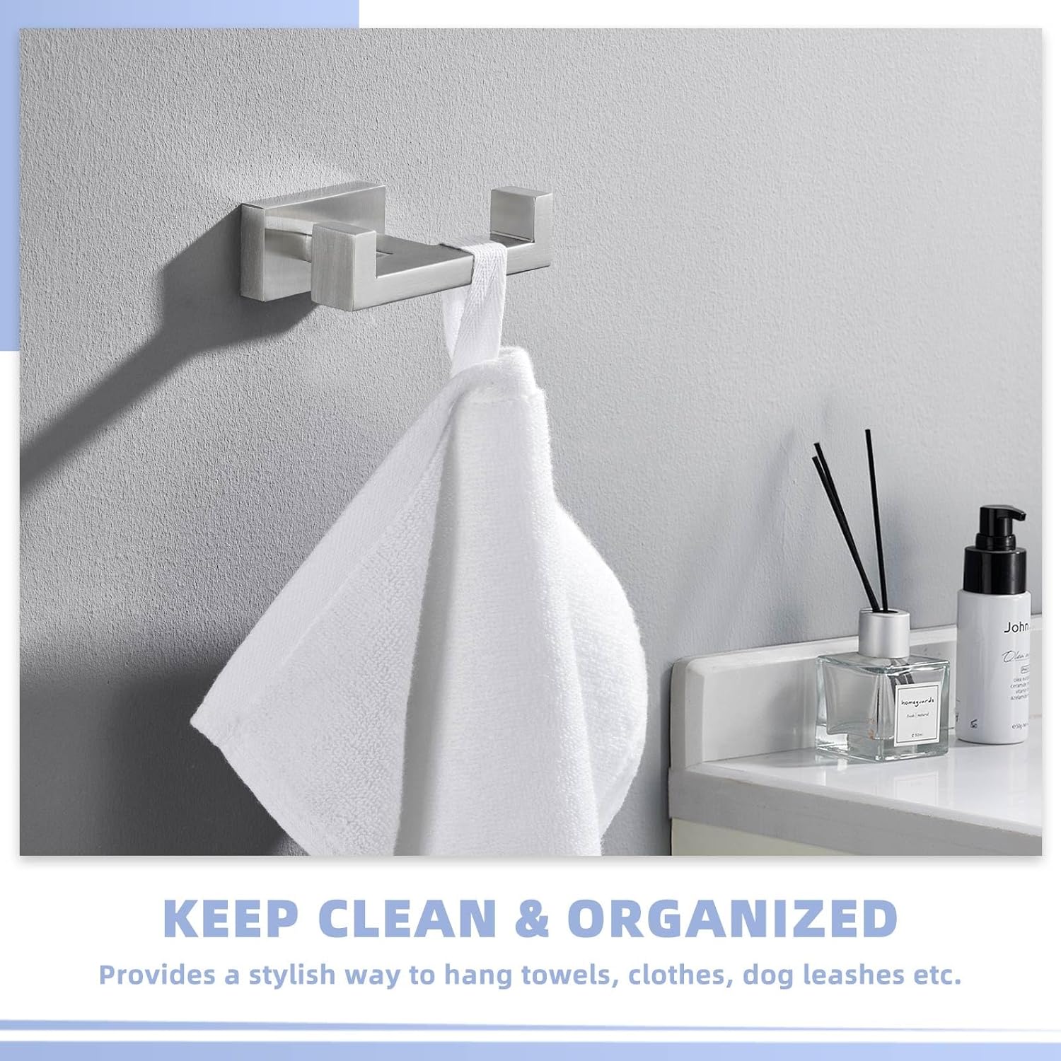 Suyar Double Towel Hook Brushed Nickel, SUS 304 Stainless Steel Bathroom Towel Holder, Coat Robe Wall Hook