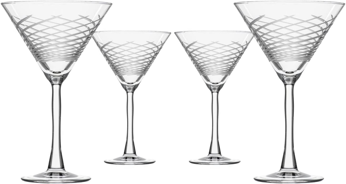 Rolf Glass Cyclone 10 Ounce Martini Glasses | Set of 4 Stemmed Cocktail Glasses | Proudly Made in the USA | Large Engraved Martini Glasses | Lead-Free Glass