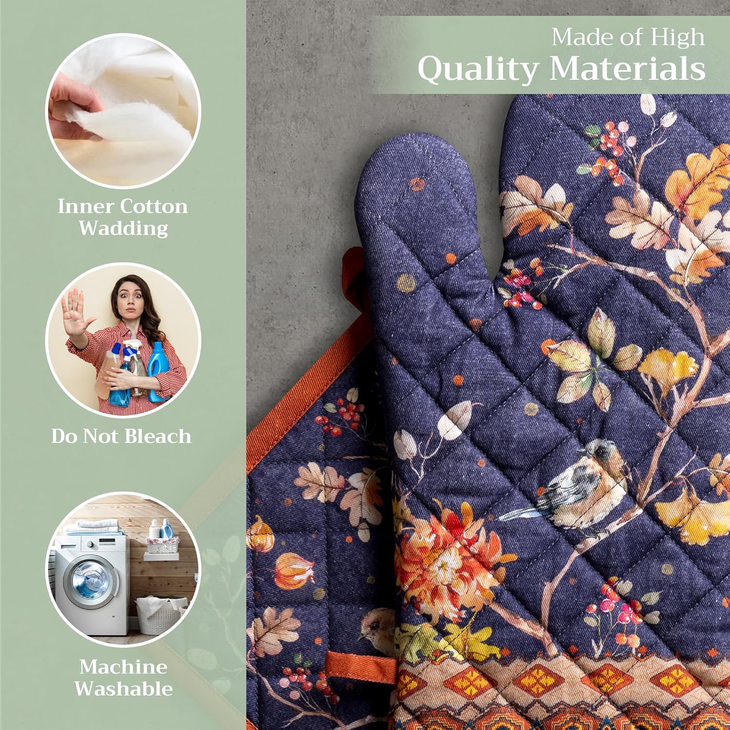 - Artistic style: Add charm to your kitchen with our oven mitt pot holder set featuring watercolor designs inspired by traditional European motifs. Stylish and functional kitchen accessories for every home cook or gift occasion.