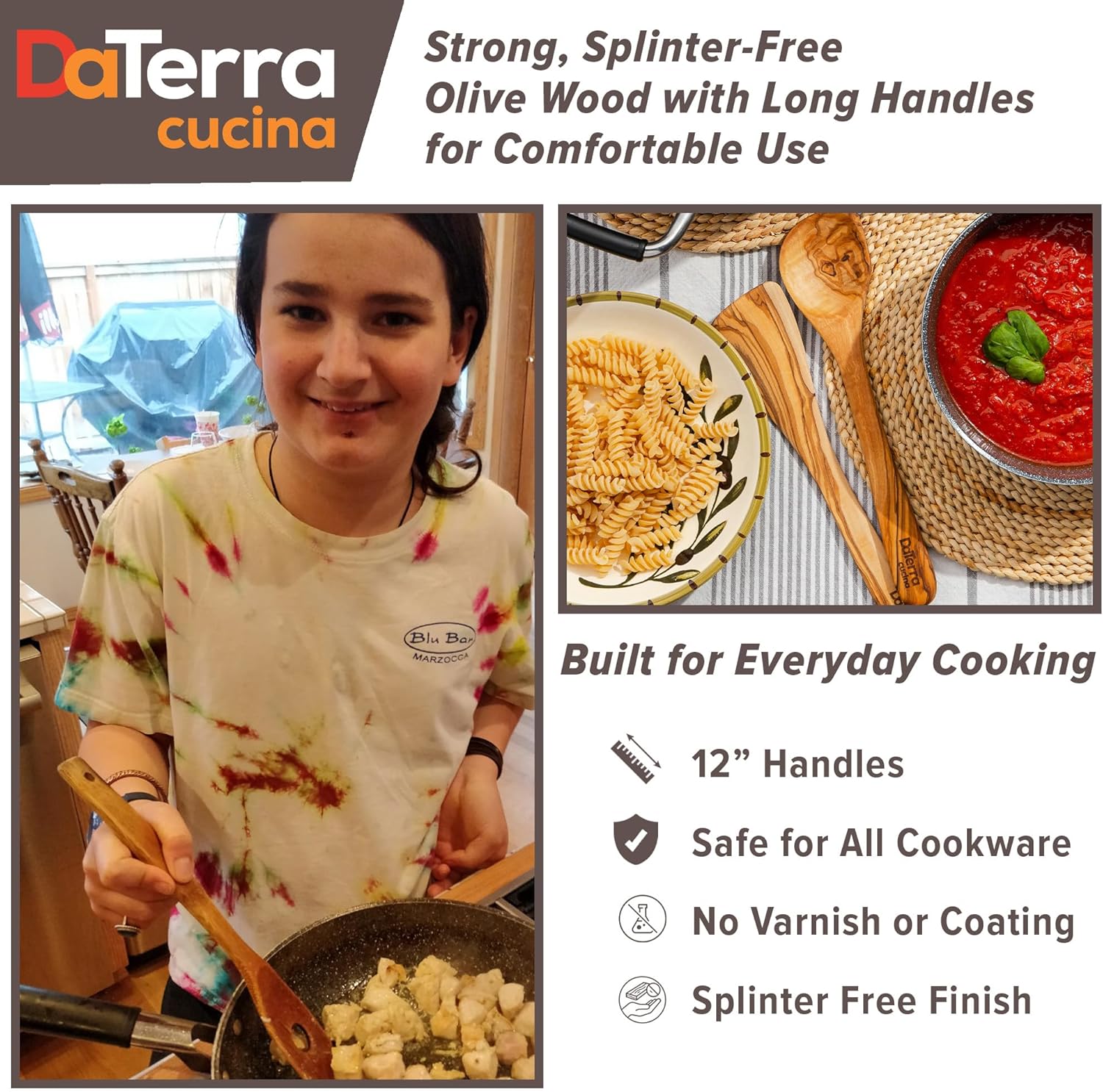 12-Inch Olive Wood Cooking Tools – 5-Piece Wooden Kitchen Utensils Set with Spoons, Spatulas & Cooking Tools – Wood Kitchen Utensils Set for Cooking – Crafted Wood Essentials by DaTerra Cucina