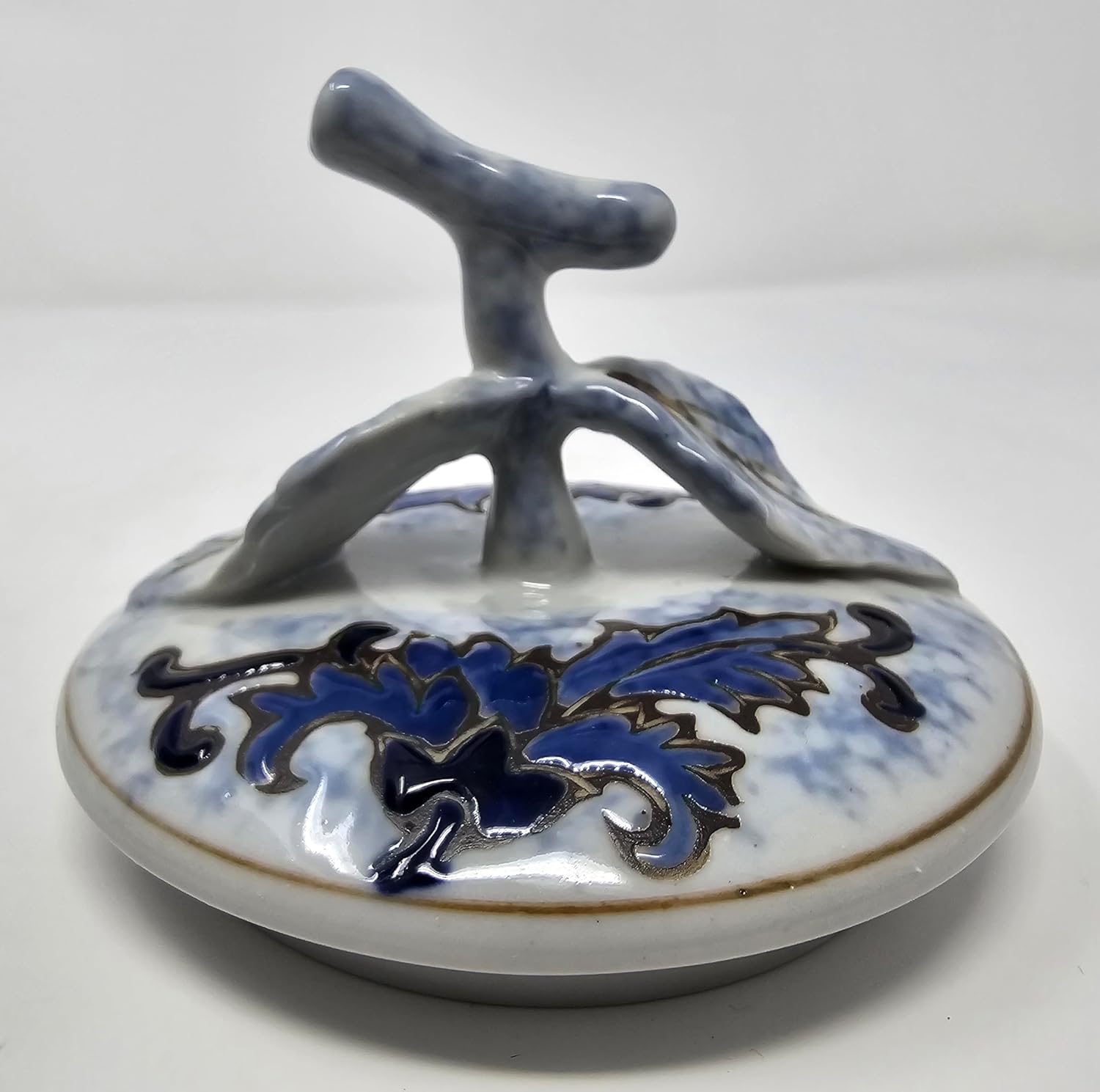 Festcool Blue and White Ceramic Flower Ginger Leaf Lid Jar Vase, Sugar Canister, Sugar Container, Tea Container, Hand-crafted Jingdezhen China