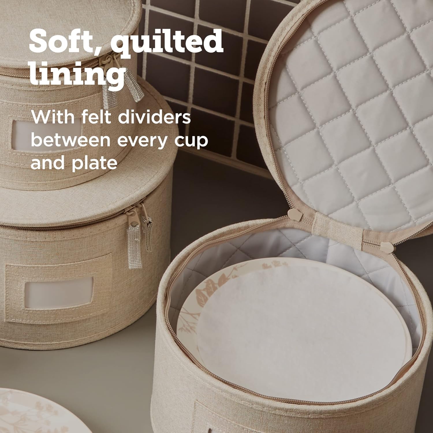 - Premium Protection: Our small storage containers are designed to provide exceptional protection for your valuable dinnerware, glasses, and stemware. The hard shell exterior shields against impacts, even while shipping, and the quilted interior with felt plate dividers gently cradles each piece, preventing scratches, chips, or cracks. You can even use these kitchen storage containers as a utensil organizer.