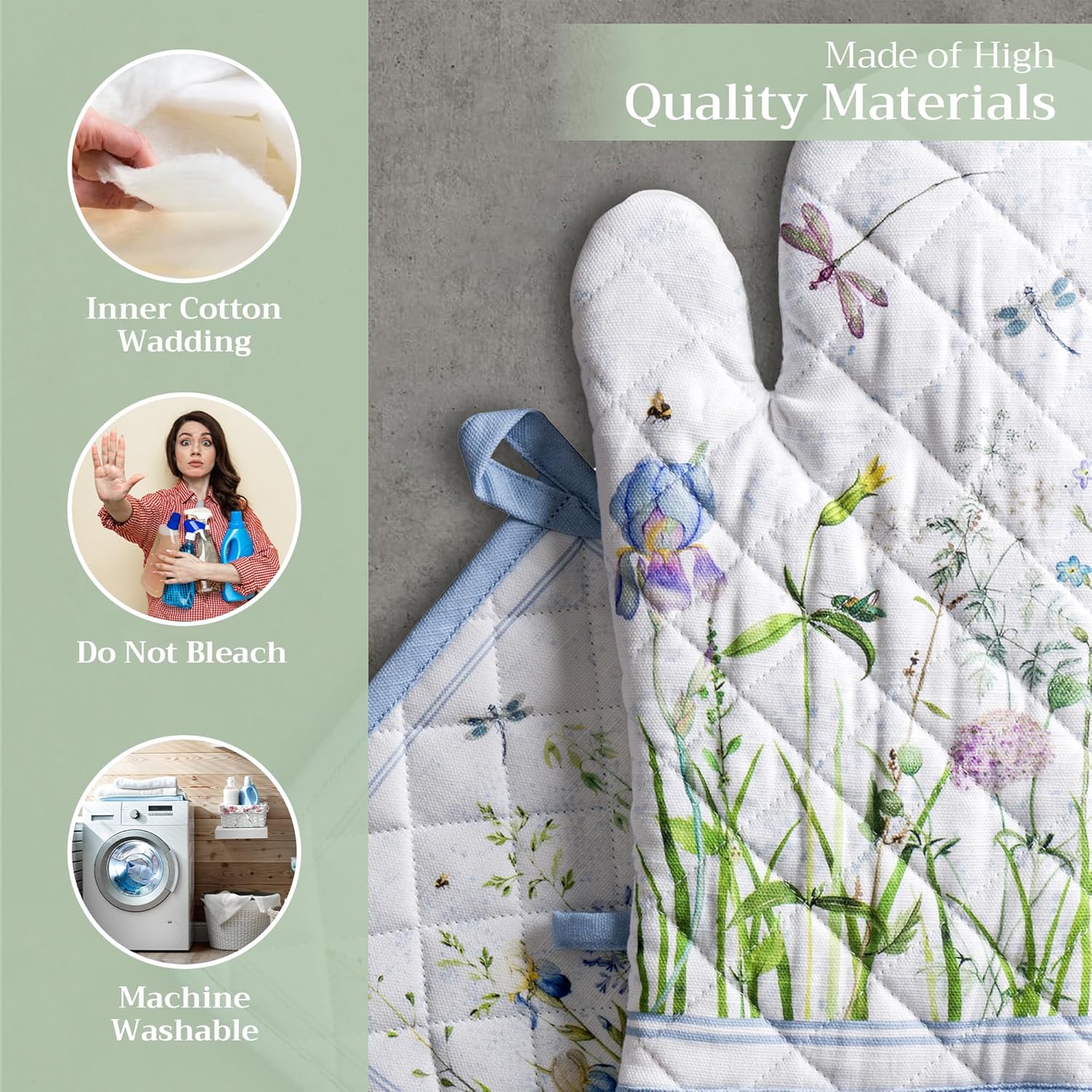 - Artistic style: Add charm to your kitchen with our oven mitt pot holder set featuring watercolor designs inspired by traditional European motifs. Stylish and functional kitchen accessories for every home cook or gift occasion.
