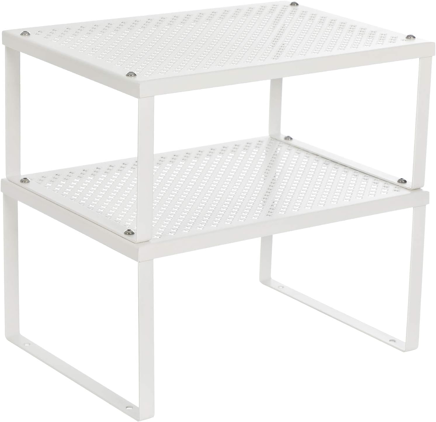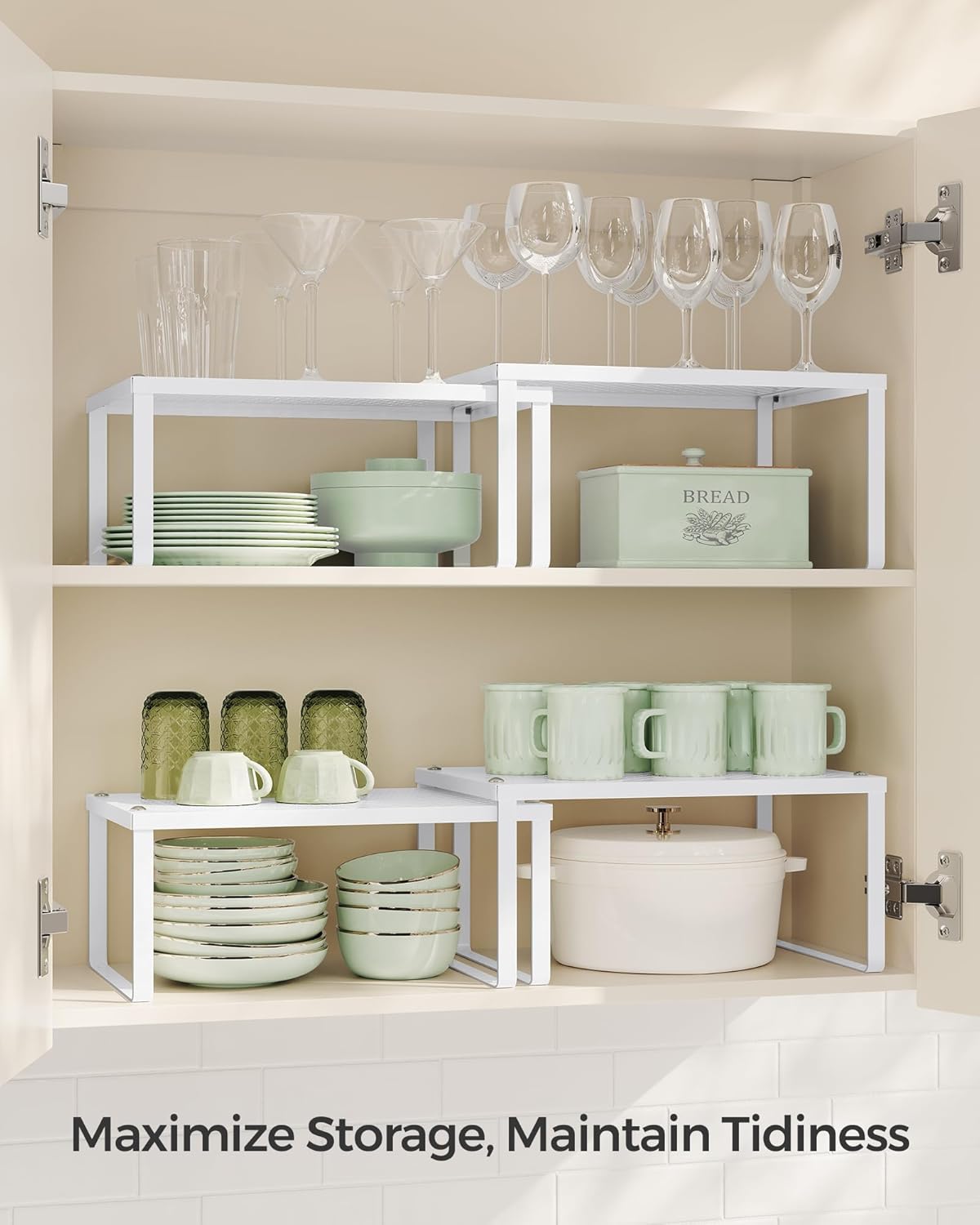 SONGMICS Spice Racks, Set of 2 Metal Cabinet Shelf Organizers, Countertop Organizers, Shelf Risers, Stackable, Expandable, White UKCS01WT