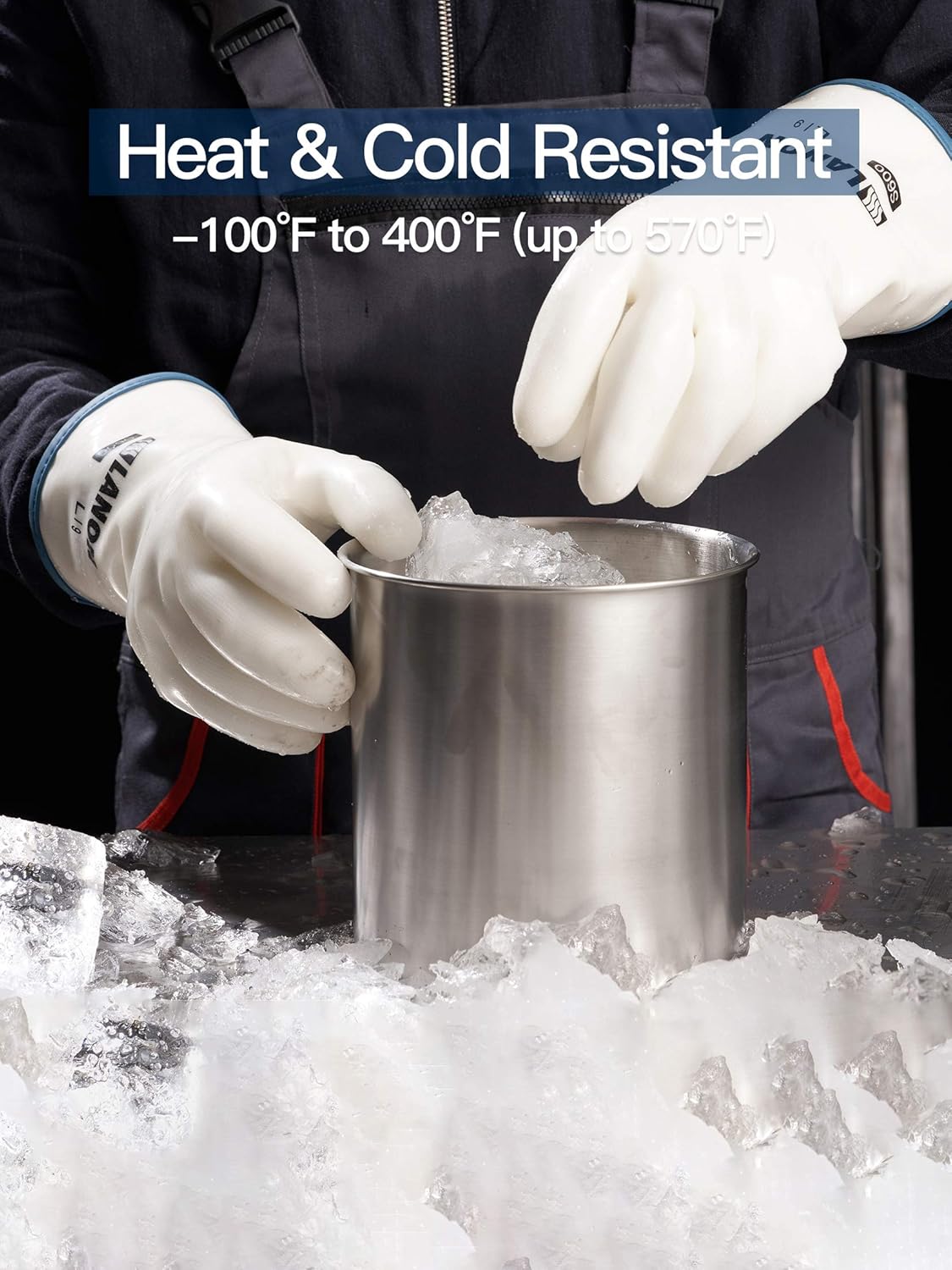 LANON Protection Wahoo Liquid Silicone Smoker Oven Gloves, Food-Contact Grade, Heat Resistant Gloves for Cooking, Grilling, Baking, White, XL/10