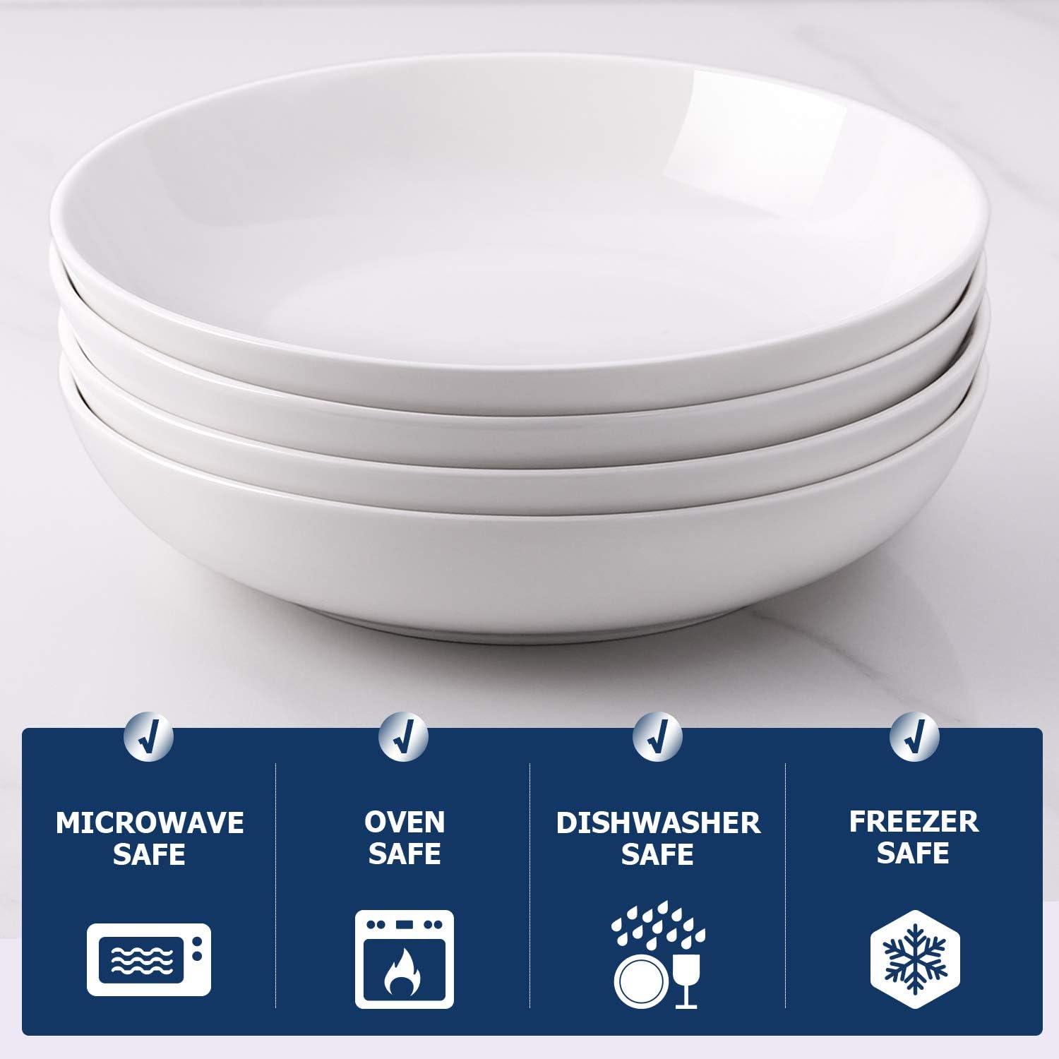 - Eating At Home, Eating Healthy: These soft white pasta dishes set of 4 are made of top-grade eco-friendly ceramic. They are proudly quality-approved porcelain. Lead-free and cadmium-free for your healthy life. The superior durability and edge strength will ensure years of use.