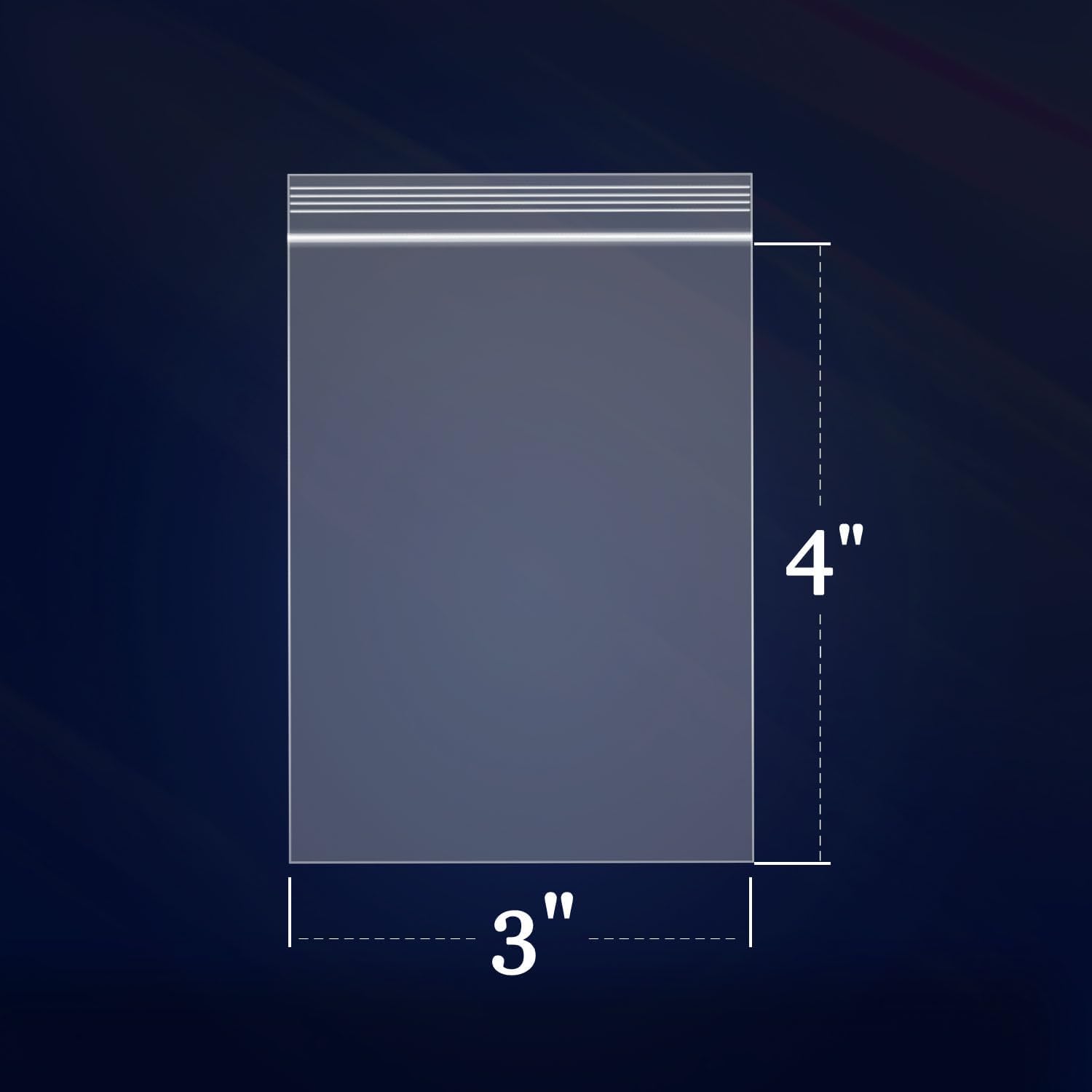 - [Specifications] -1000 Count 3" x 4" Usable Dimension (excludes the zipper), 2.0 Mil Thickness Reclosable Zip Poly Bags.We have various sizes for you to choose from.