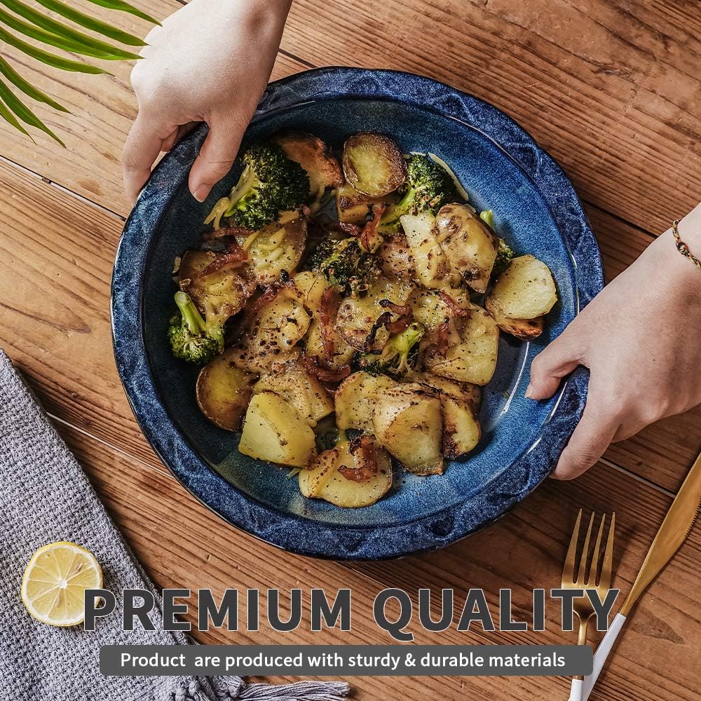 - ARTISTIC REACTIVE GLAZE: The KOOV deep dish pie pan features reactive glaze color for enjoyable baking time. Remarkable display can be a charming decoration even an artwork in your dining table and kitchen.