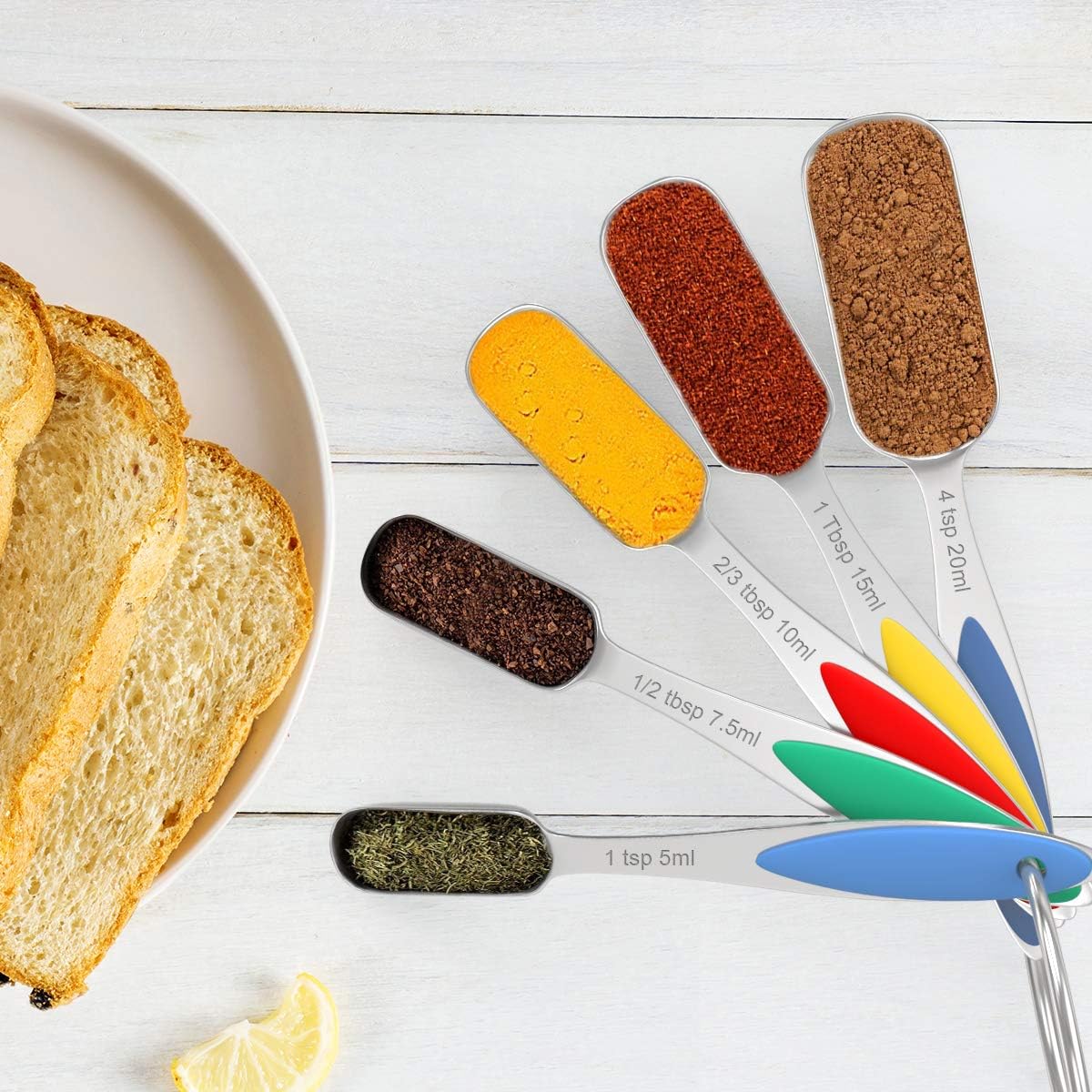 - NO MORE GUESSWORK: Each cup and spoon have engraved U.S. and metric measurement markings, which are easy to read and never fade. The sharp and bright colors of the handles will help you easily identify what cups you are looking for. No more guess in kitchen