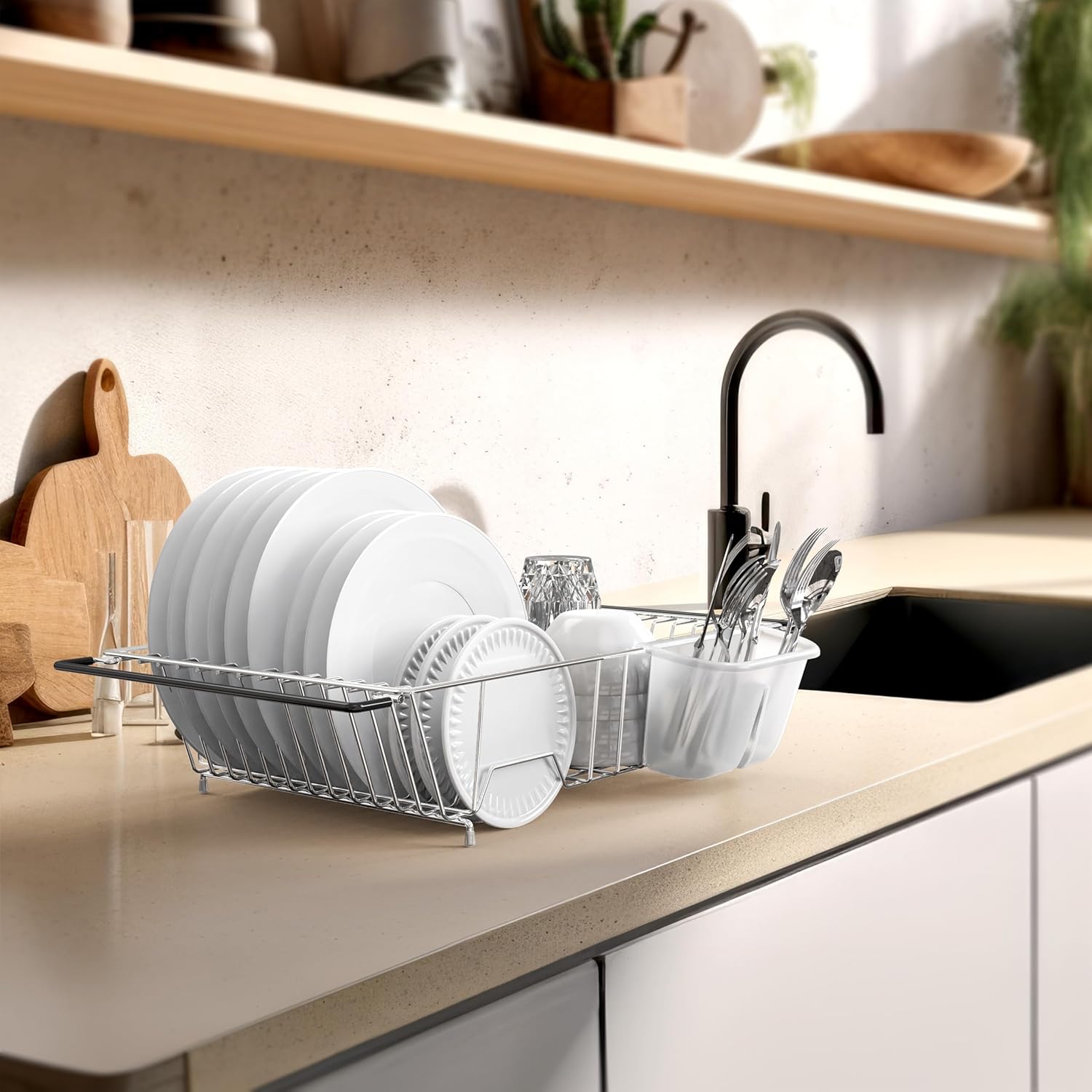 - Dish Drainer for use over the sink or on the countertop. Holds up to 14 plates.