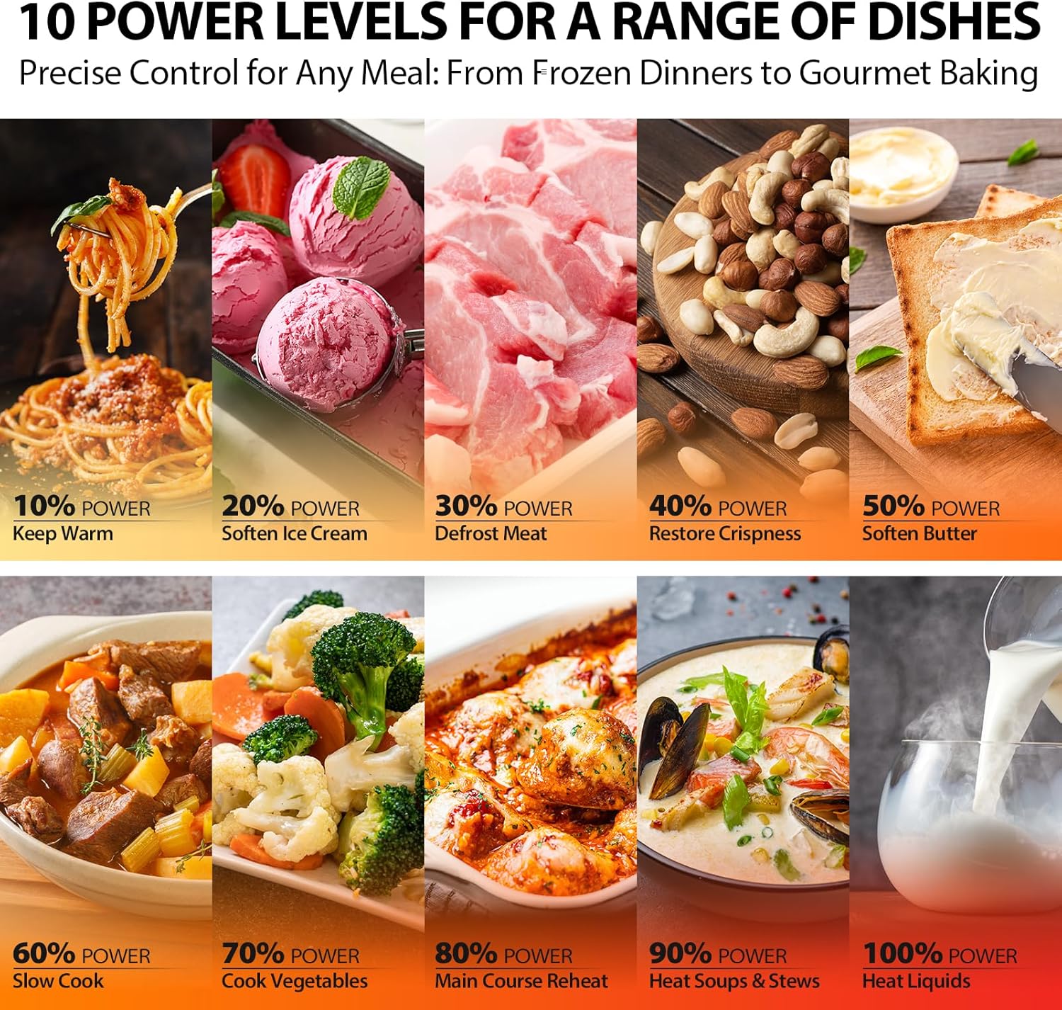 - 【6 Smart Sensor Auto Menus】Pre-programmed sensor menus for optimum heating of popular foods like pizza, potato, vegetables and more. Smart sensorwill automatically adjust power and keeps food texture.