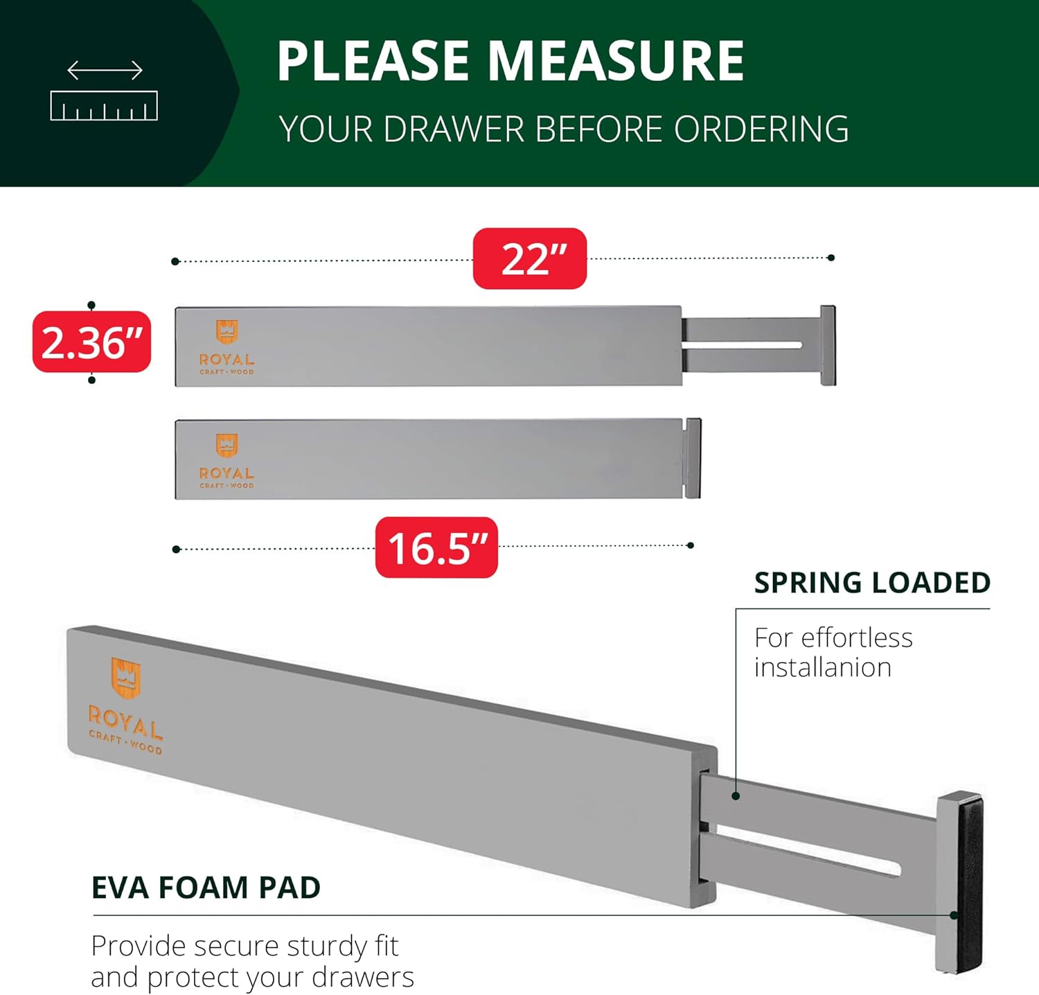 - ✅ MEASURE YOUR DRAWER BEFORE PURCHASE: Please be aware that the Royal Craft Wood Drawer Divider Organizer is a bit deeper and larger than some kitchen drawers. We kindly ask that you MEASURE your home drawer prior to purchase to ensure that this product is a good fit. Please ensure that your drawer space intended to be used with the drawer organizer is LARGE, between 17” and 21” wide for a guaranteed, comfortable fit when fully expanded