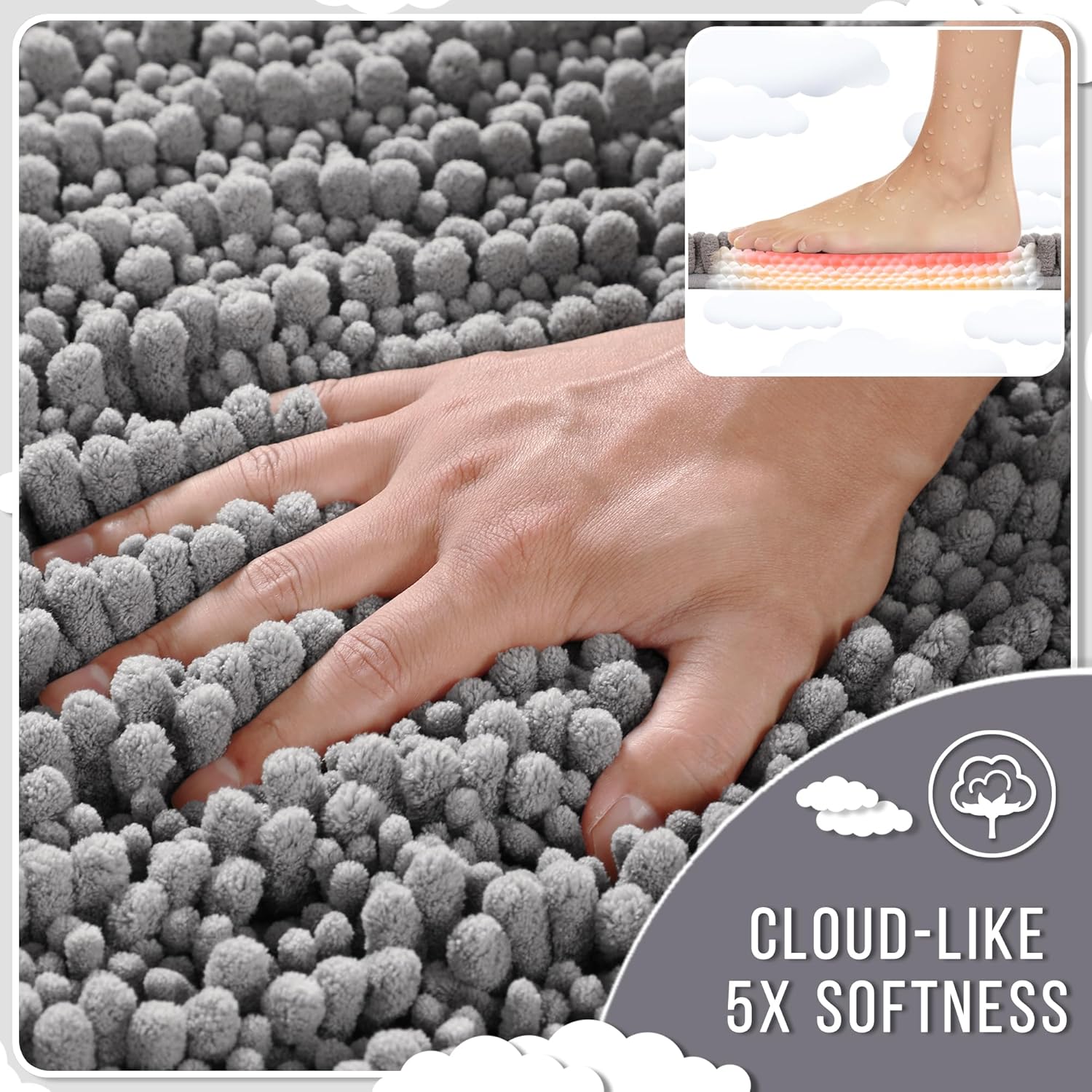 Yimobra Bathroom Runner Rug 60x24 Inch - Extra Long Non Slip Chenille Bath Mat, Soft & Absorbent, Machine Washable Shaggy Hallway Carpet for Vanity Tub Shower, Gray Home Decor Accessories