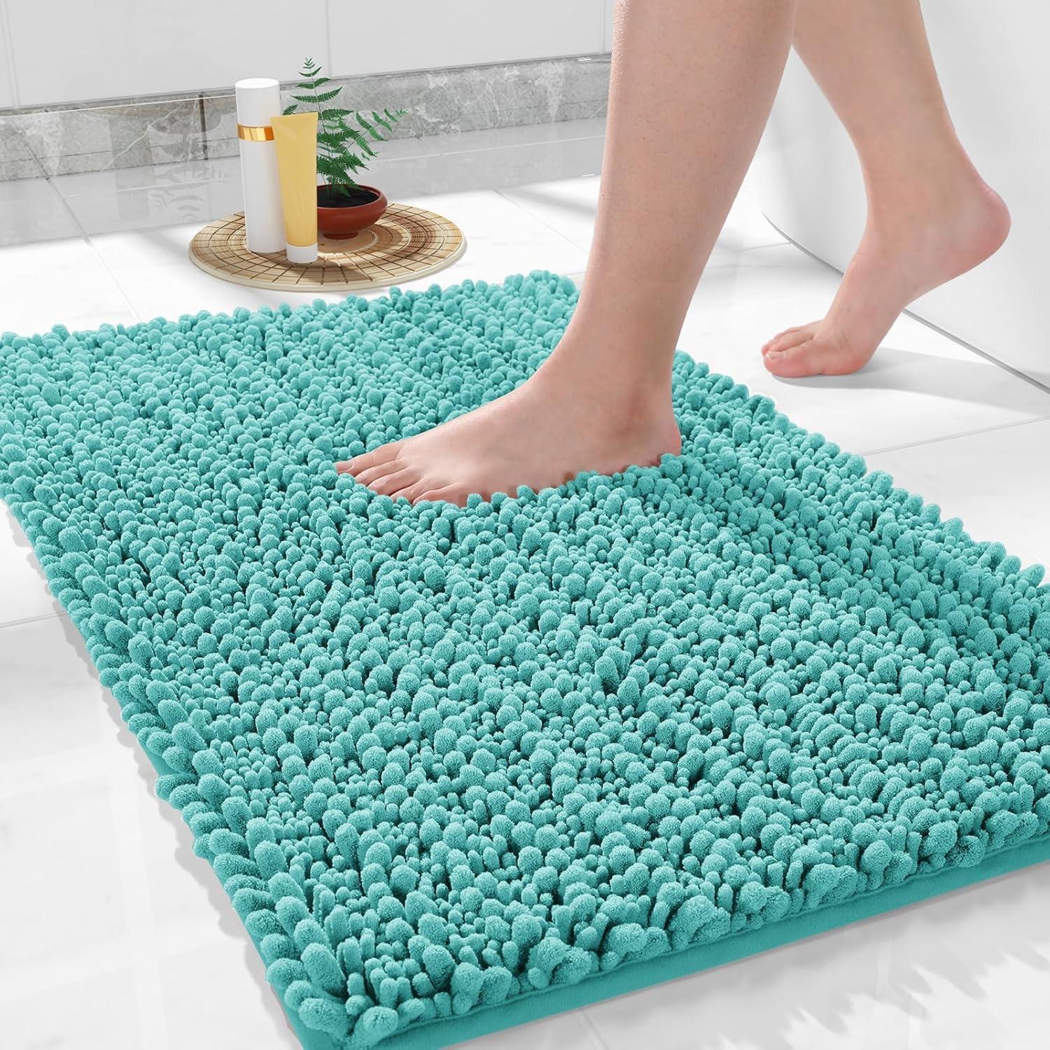 Yimobra Large Bathroom Rugs Non Slip Washable 36x24 Inch - Ultra Soft Absorbent Chenille Bath Mat, Quick Dry Shaggy Floor Carpet for Tub Shower, Lake Blue Home Decor Accessories