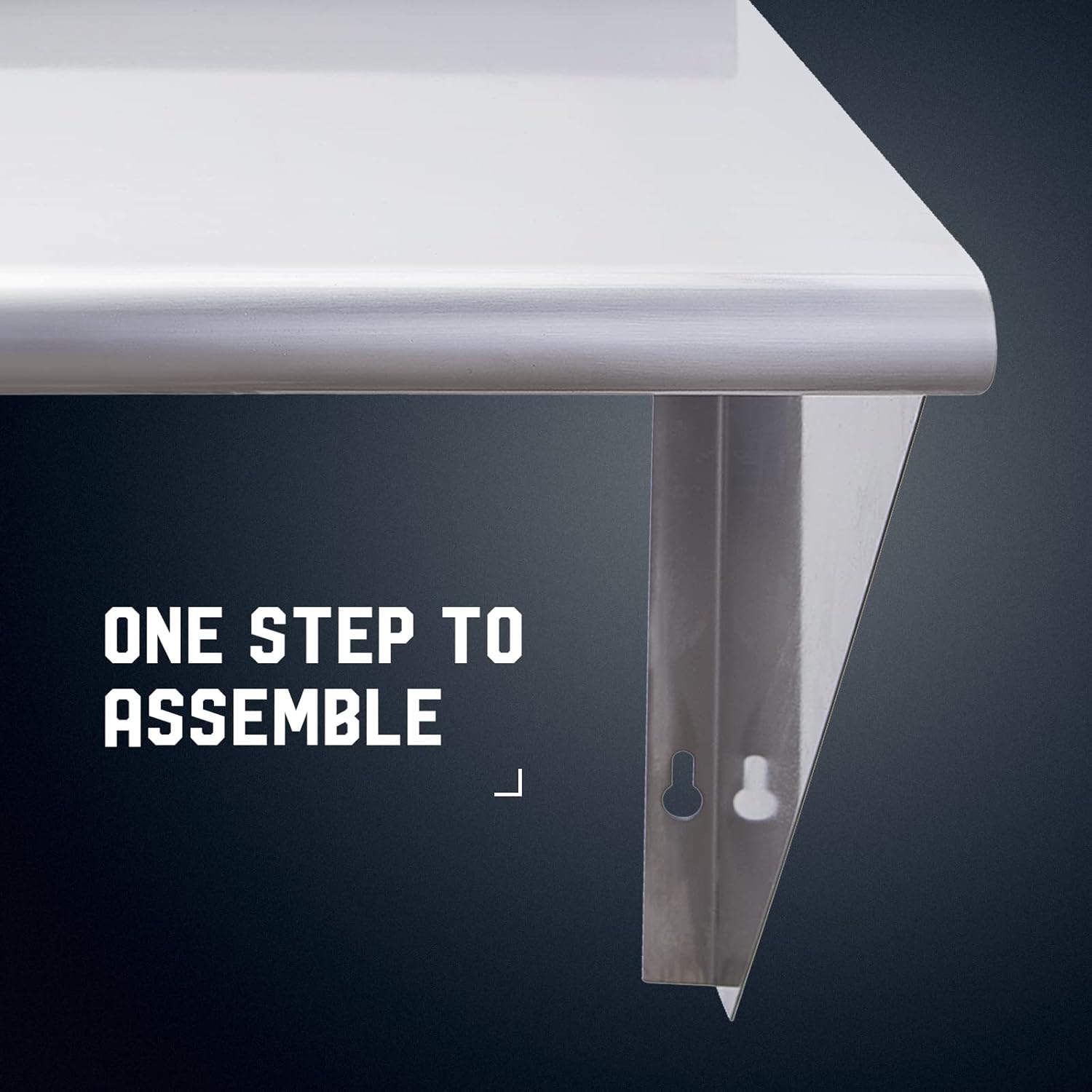 - Premium Stainless Steel: Made of 18 gauge Type 430 stainless steel, this wall mounted shelf is NSF certified to meet stringent public health standards and regulations. It is resistant to corrosion and rust, beautiful and practical, and durable. The food-grade stainless steel surface, is flat and smooth, which is easy to clean and sterilize