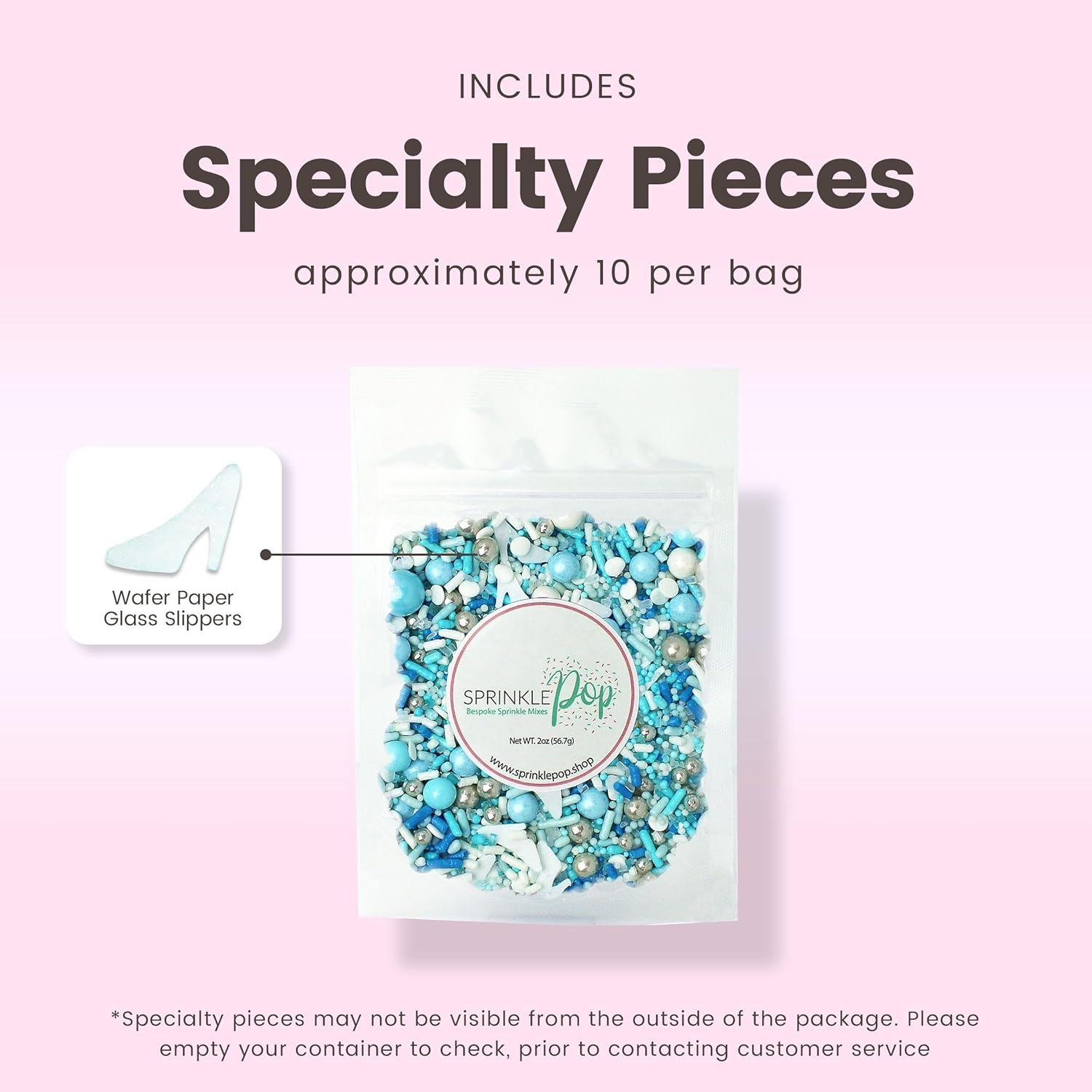 Sprinkle Pop Glass Slipper Princess Sprinkle Mix| Blue White Sprinkles with ~10 Frozen Shoe Wafer Paper and Silver Dragees| Girl Sprinkles Made in USA for Decorating Birthday Cupcakes Cake Donuts, 2oz