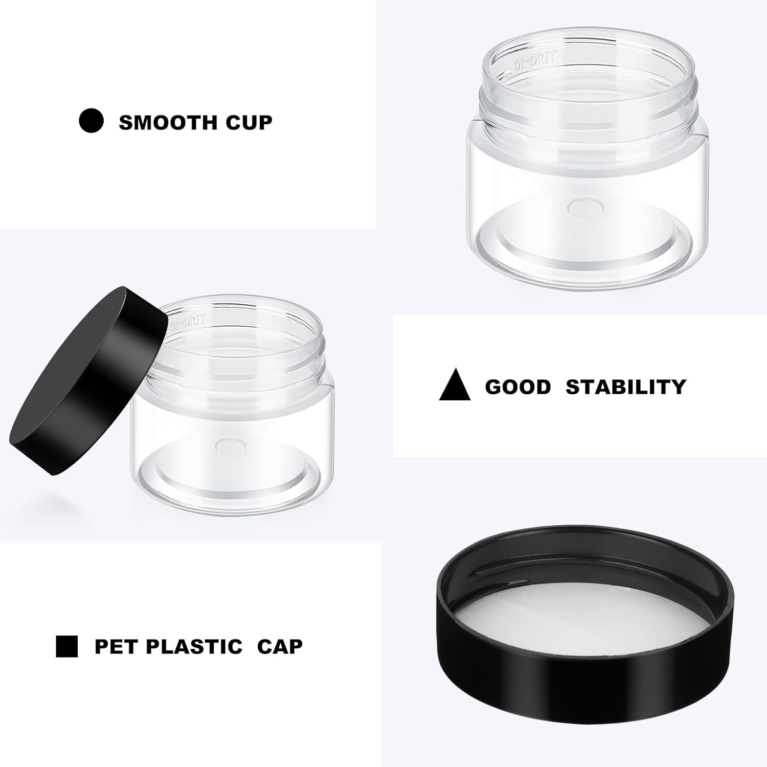 - Quality material: these round plastic pot jars adopt quality PET plastic, not easy to be broken, with good impact resistance, keep everything neat and organized