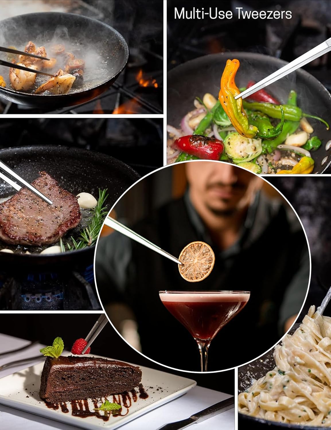 8.5 Inch Kitchen Tweezers Fine Tweezer Tongs, MSY BIGSUNNY Stainless Steel Food Tweezers Multi-function Precision Serrated Tips Cooking Tongs Kitchen Serving Tong
