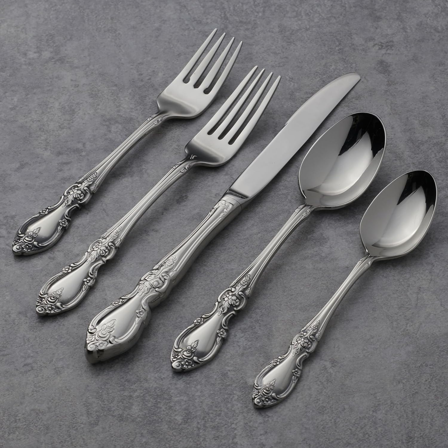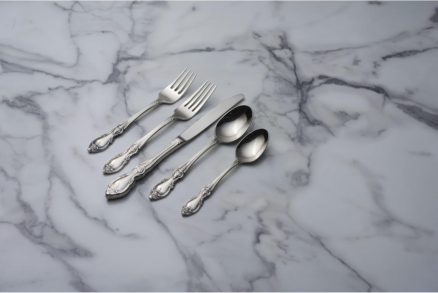 Oneida Louisiana 45 Piece Fine Flatware Set 18/10 Stainless Steel, Service for 8, Silver