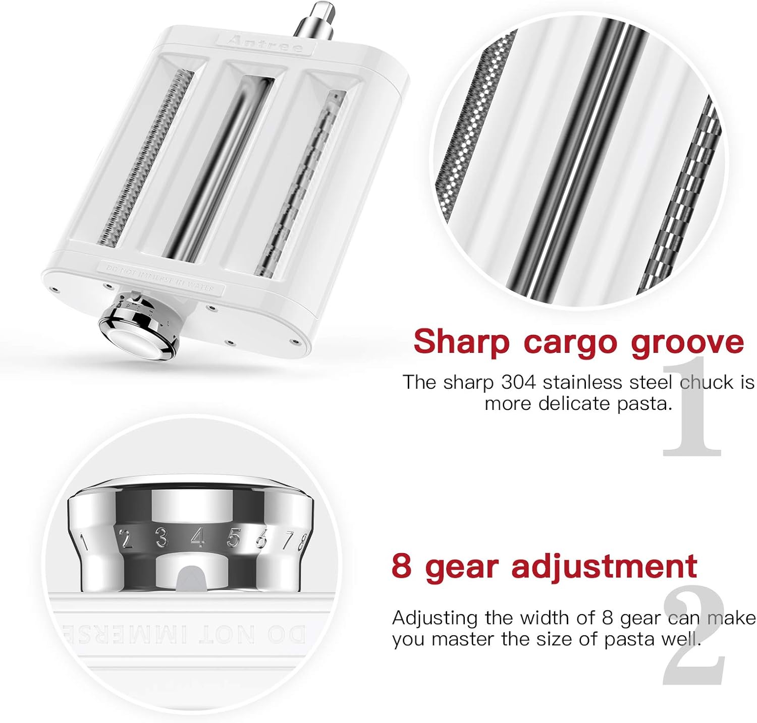 - Compatible with KitchenAid - ANTREE offers the high-quality 3-1 pasta maker attachment for KitchenAid. You can roll the dough and cut the pasta at the same time, and it can save your time and enjoy your kitchen time. Notice: Sold separately.