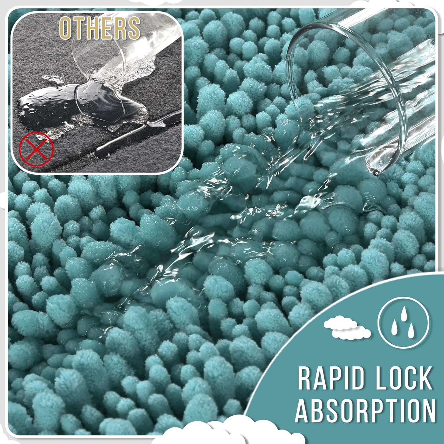 Yimobra Bathroom Runner Rug 60x24 Inch - Extra Long Non Slip Chenille Bath Mat, Soft & Absorbent, Machine Washable Shaggy Hallway Carpet for Vanity Tub Shower, Teal Blue Home Decor Accessories