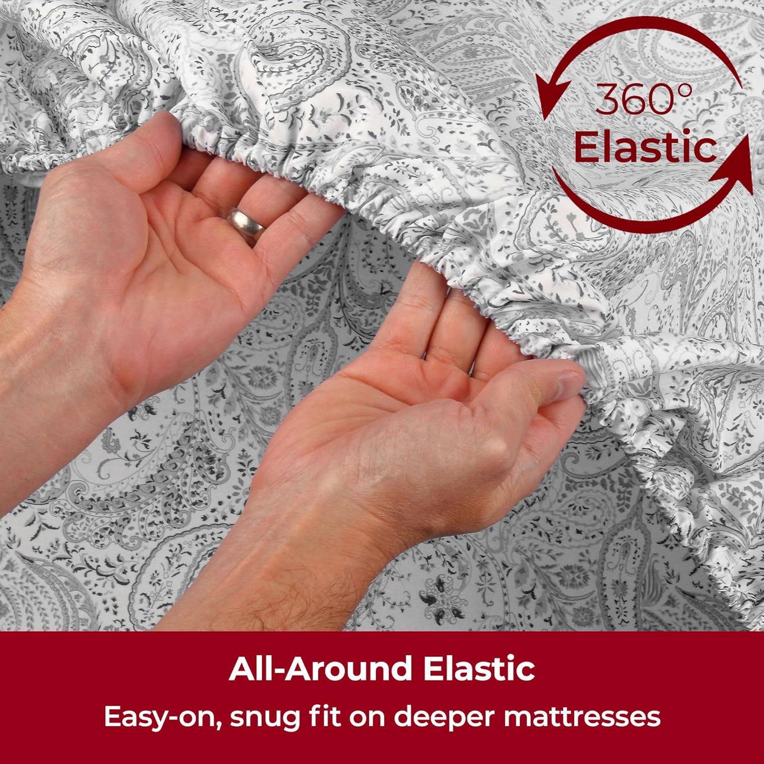 Mellanni Extra Deep Full Sheets - 4 PC Iconic Collection Bedding - Hotel Luxury, Ultra Soft, Cooling Bed Sheets - Wrinkle, Fade, Stain Resistant (Full, Paisley Gray)