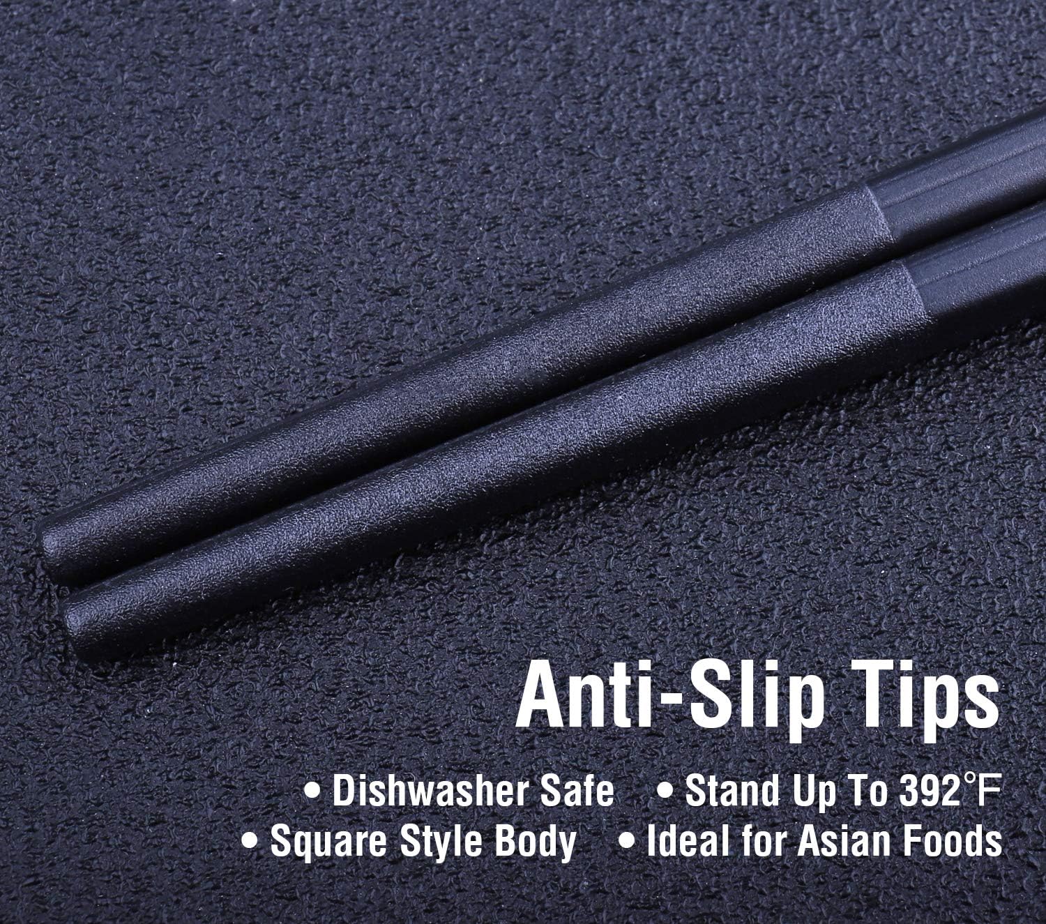 5 Pairs Fiberglass Chopsticks, GLAMFIELDS Reusable Japanese Chinese Chop sticks Dishwasher Safe, Non-slip, 9 1/2 inches - Black with Multi-purpose Drawstring Bag Carrying Case