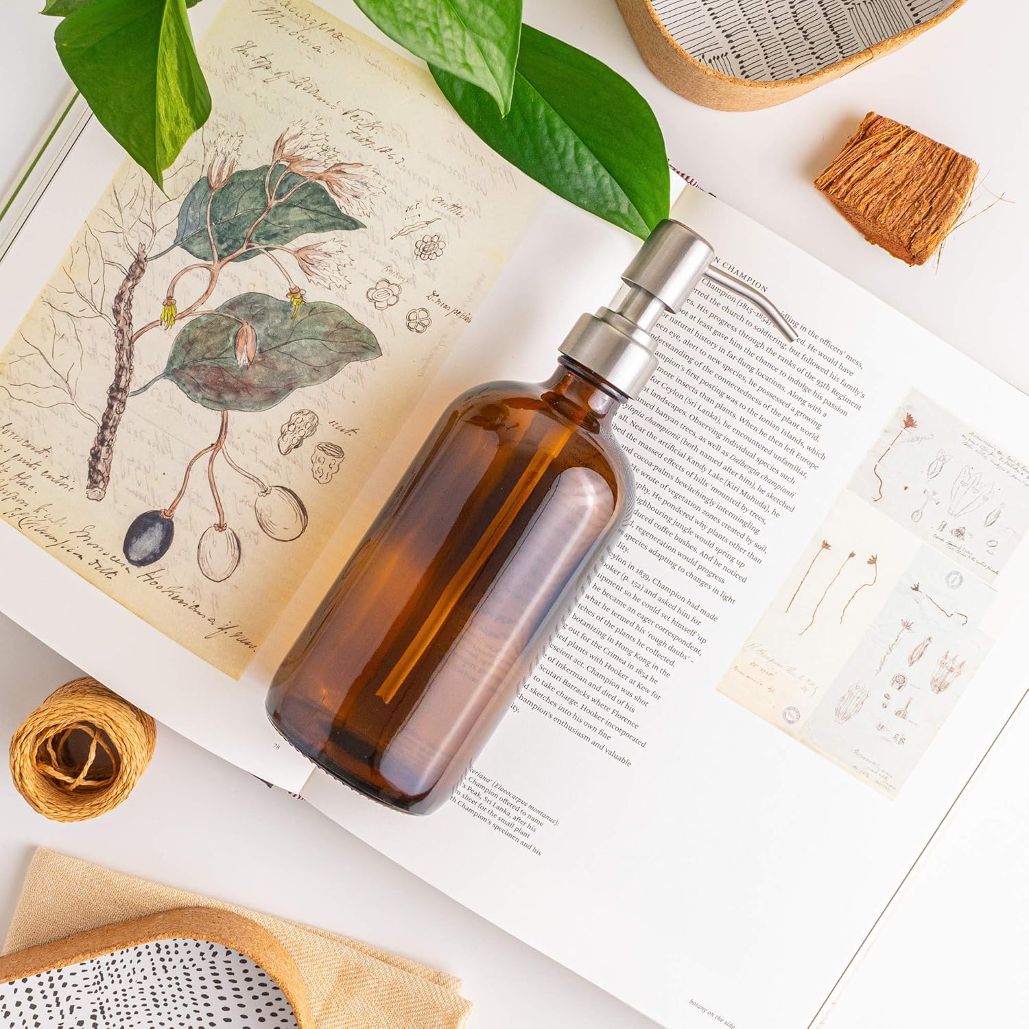 - UNRIVALED CONSTRUCTION - Set of 2 premium thick glass soap dispenser with pump. 16 Oz fortified amber bottles, refillable soap dispenser for daily use. Lead-free. Vine Creations soap dispensers are Lead-free.