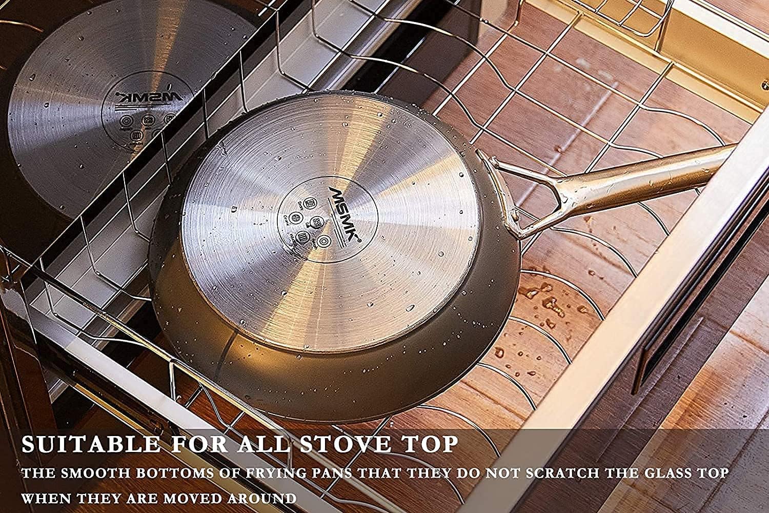 - Easy to Clean Design: MSMK cookware limestone nonstick of the frying pan makes scraping off burnt-on food much easier. MSMK non-stick pans can usually be cleaned just by wiping them using a paper towel, you are saving a lot of water