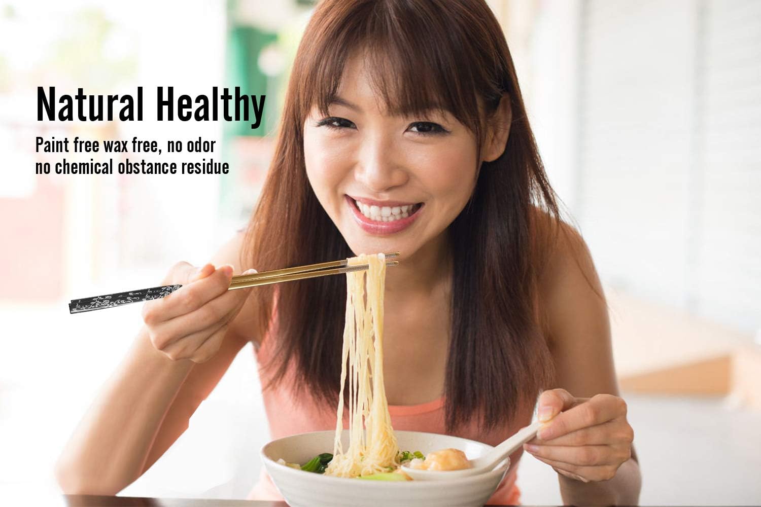 - ✿ 【Durable and Sturdy】: The metal chopsticks are made of SUS304 stainless steel with whole body titanium plated. Titanium is excellent material which is used on premium flatware. It is permanent plating. No peeling or discoloration after long time use. The titanium plating on the stainless steel chopsticks makes the reusable chopsticks more sturdy and not easy to scratch. The stainless steel chopsticks are healthy and almost indestructible.