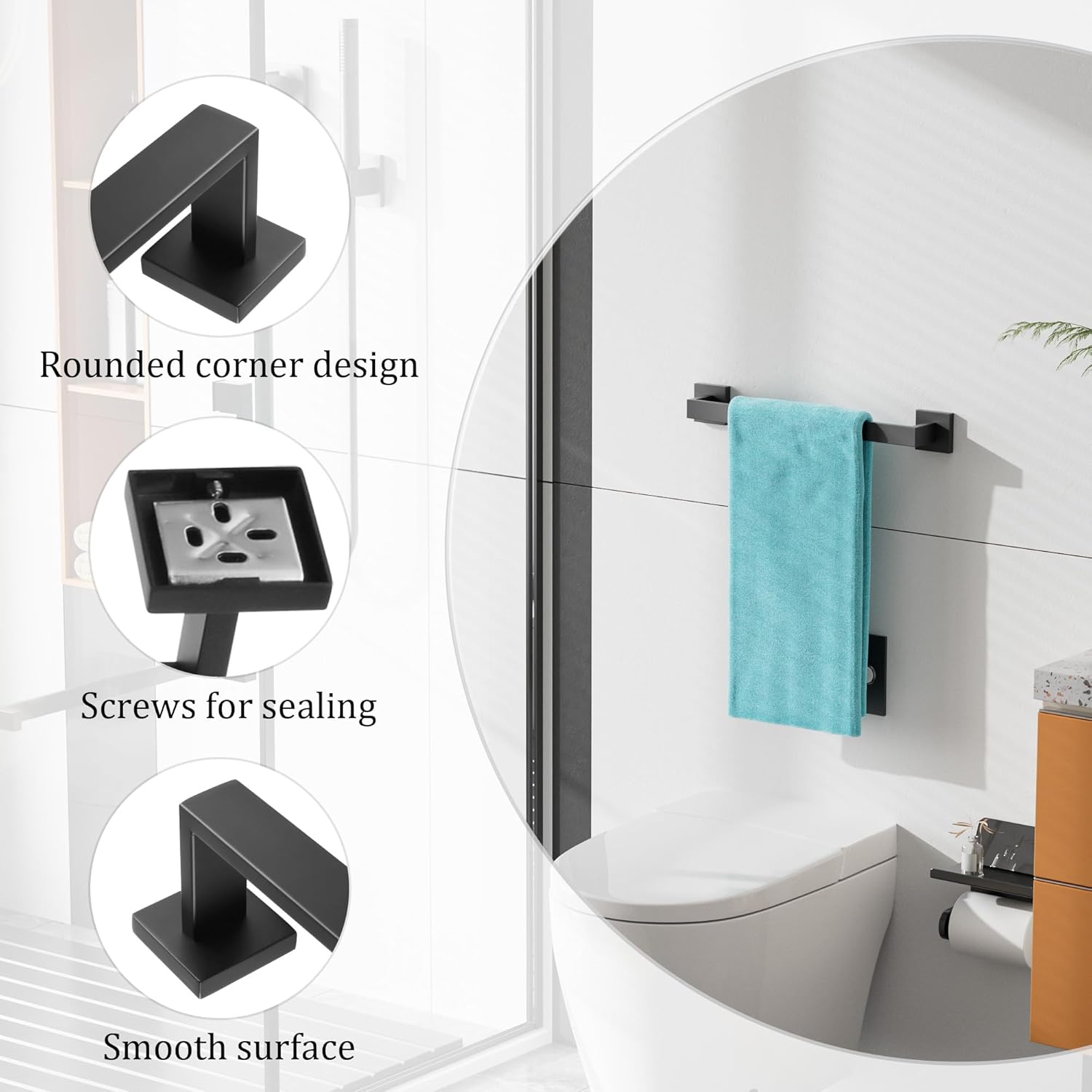 Alise Black Towel Bars,15.75 Inch Towel Holder Towel Racks for Bathroom and Lavatory,SUS304 Stainless Steel Hand Towel Hanger Rail Wall Mount,Useable Length 13.98 Inch Towel Bar, GYT040-B