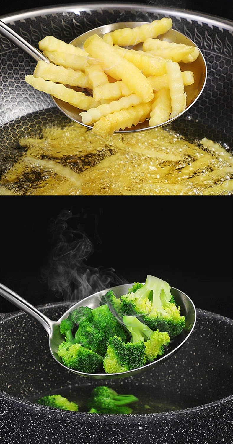 FJNATINH Solid 304 Stainless Steel Skimmer Slotted Spoon Colander Strainer Ladle for Cooking and Frying, Kitchen Utensils Wire Strainer Pasta Strainer Spoon