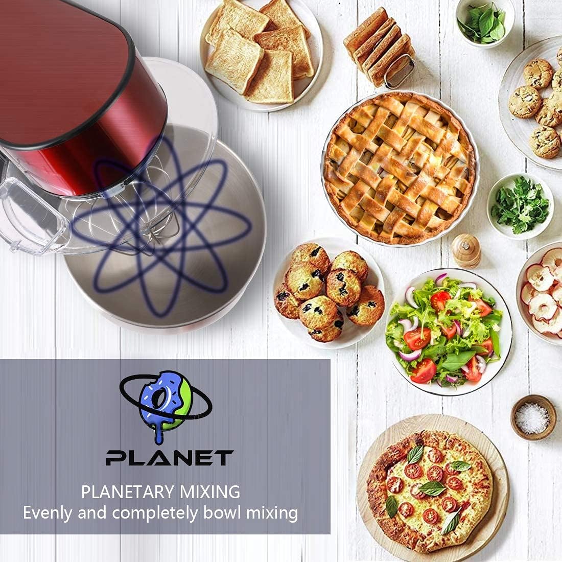 - MULTIPLE ATTACHMENTS - Stand mixer comes with 3 attachments, hook, beater and whisk to give you more choice making different food. Hook only used on 1,2 speeds for dough. Hook and beater are not Dishwasher Safe. Cleaning requiring little more than hot soapy water and sponge.