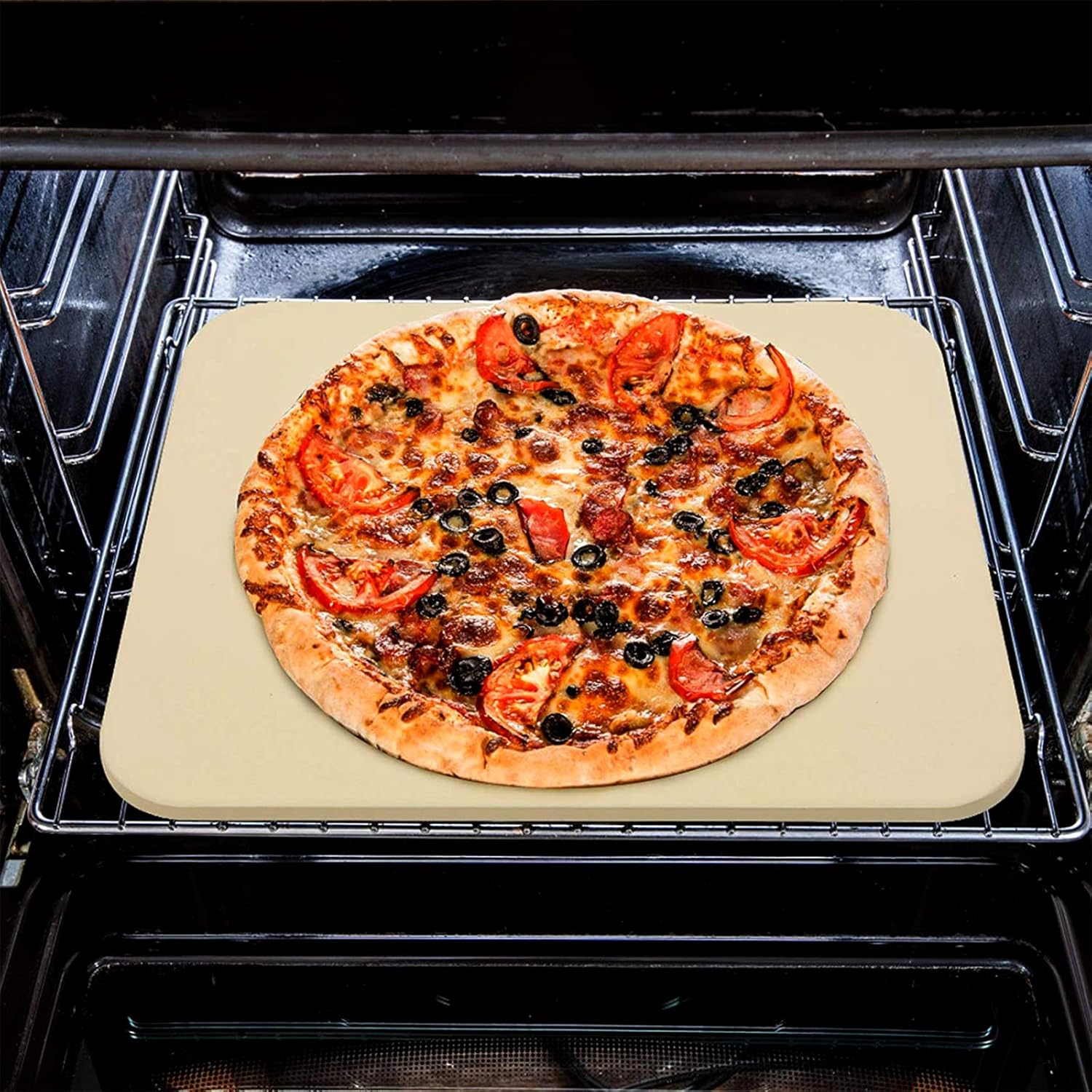 - 【Premium Accessories For All Pizza Oven】- Kits include one 15" x 12" rectangular pizza stone, one stainless steel pizza stone holder pan with handle, one pizza cutter with wooden grip and protective cover.
