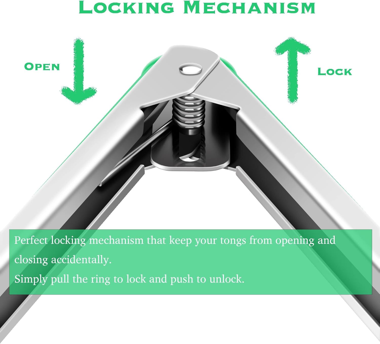 9-Inch & 12-Inch Premium Stainless Steel Food Tongs, Turquoise Silicone BPA Free Non-Stick BBQ Cooking Grilling Locking Kitchen Tong