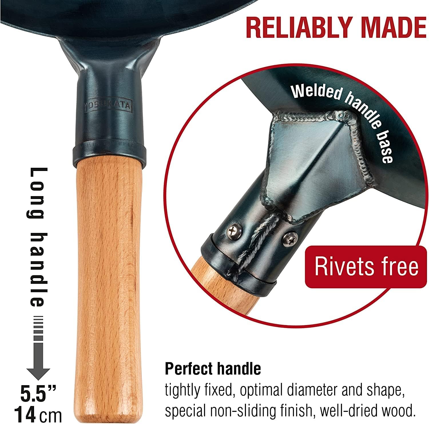 - TRUE FLAVOR & VERSATILITY:Discover the rich, true flavours of Chinese and Asian cuisine at home or outdoors. The YOSUKATA 14” carbon steel wok with round bottom, specially designed to retain juices and enhance taste. Whether you're looking for a grill wok, BBQ wok, or a professional wok for home, outdoor or restaurant use, it’s ideal for stir-frying, pan-frying, braising, deep-frying, searing, steaming, and even smoking.