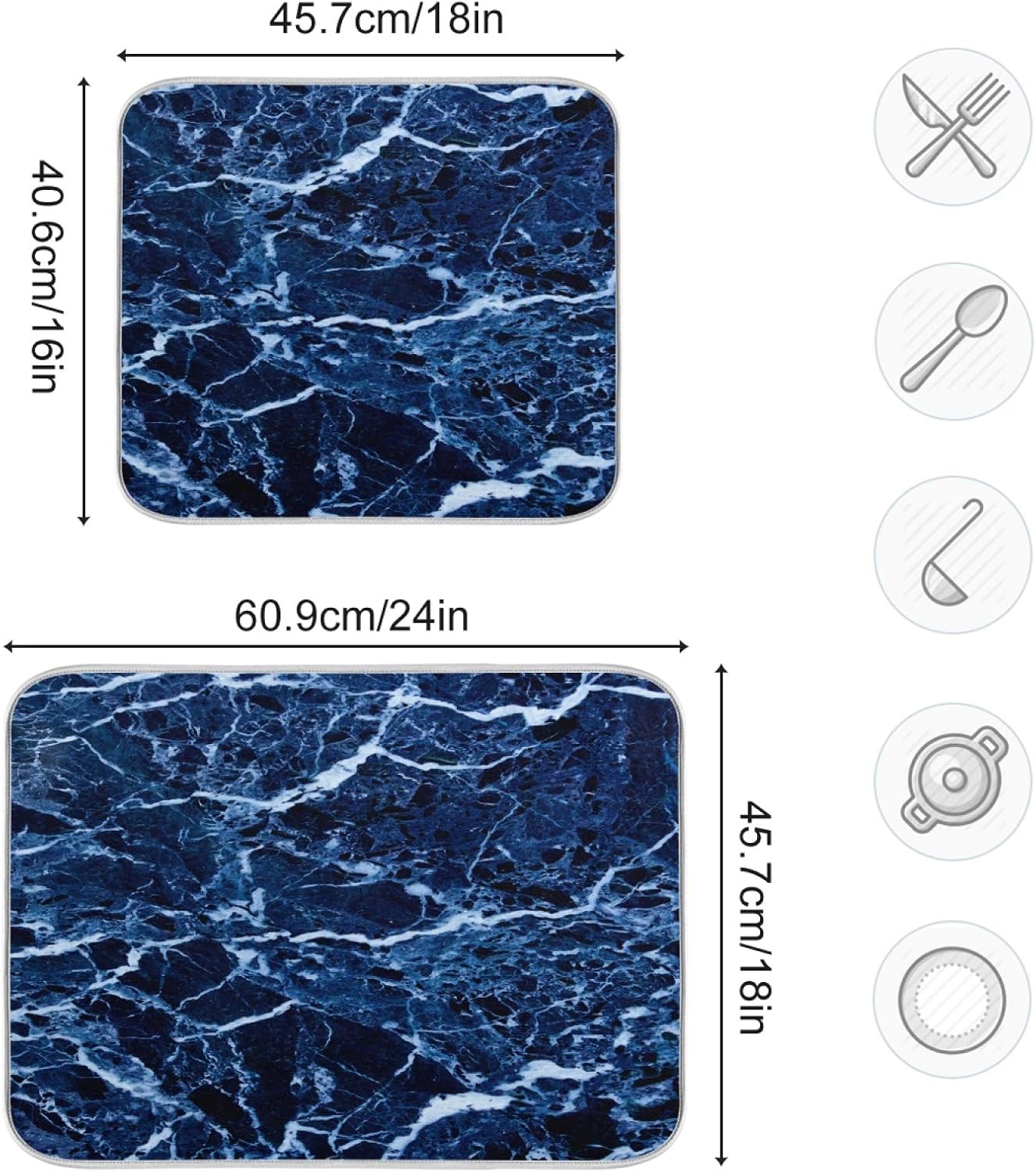 Super Absorbent Dish Drying Mat, Microfiber Fast-Drying Dish Mat, 24" x 18, Kitchen Dish Drying Pad, Navy Blue Marble…